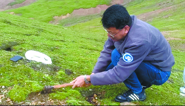 出野外的魏立新。 中國(guó)科學(xué)院西北高原生物研究所供圖