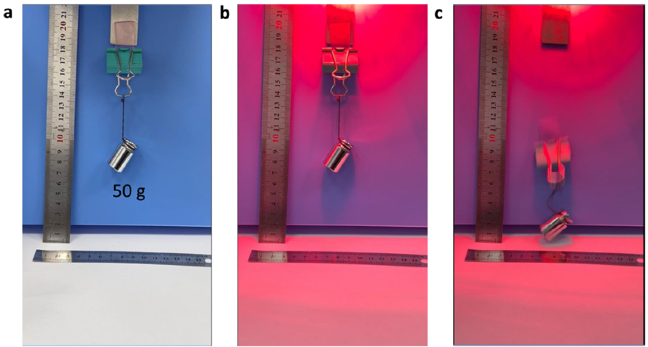 智能黏附材料的光控演示。