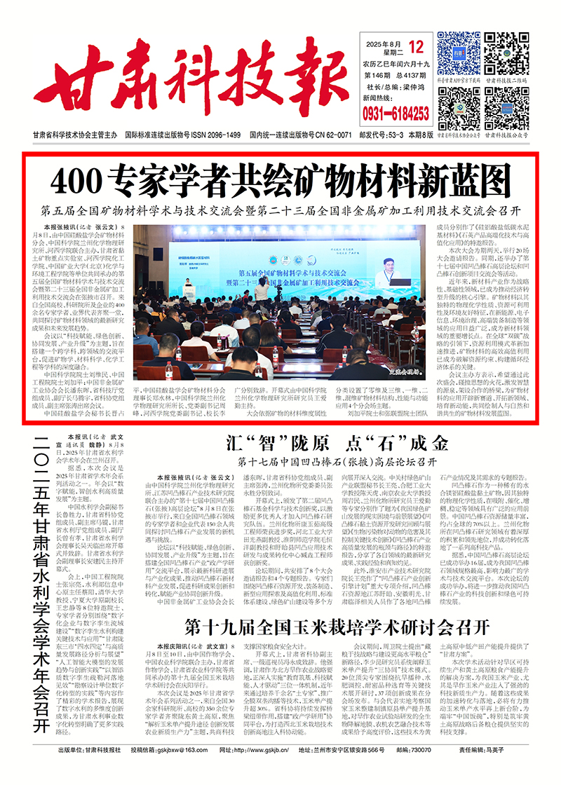 【甘肅科技報】第五屆全國礦物材料學(xué)術(shù)與技術(shù)交流會召開 400專家學(xué)者共繪礦物材料新藍(lán)圖
