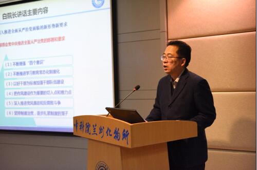 會上,黨委書記、副所長王齊華傳達(dá)學(xué)習(xí)了2017年中科院黨建暨黨風(fēng)廉政建設(shè)工作會議精神,對中科院院長、黨組書記白春禮,中科院黨組副書記、副院長劉偉平以及中央紀(jì)委駐院紀(jì)檢組組長李志剛在院2017年黨建暨黨風(fēng)廉政建設(shè)工作會議上講話精神進(jìn)行了詳細(xì)解讀,并組織與會人員認(rèn)真學(xué)習(xí)了《中科院黨組貫徹<中國共產(chǎn)黨問責(zé)條例>實施辦法》、《中國科學(xué)院黨的建設(shè)工作領(lǐng)導(dǎo)小組2017年工作要點》及《中國科學(xué)院2017年黨風(fēng)廉政建設(shè)和反腐敗工作要點》。