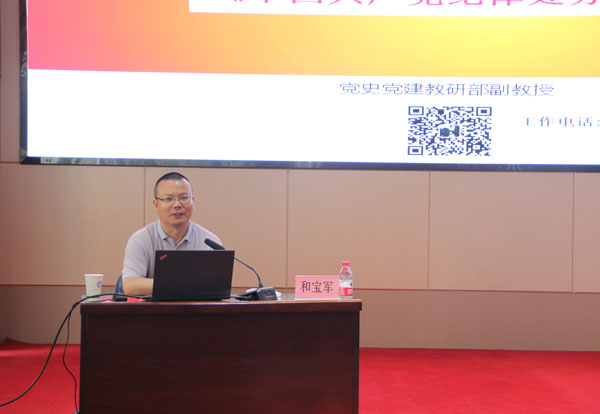 為深入學(xué)習(xí)貫徹習(xí)近平新時代中國特色社會主義思想和黨的二十大精神,進一步學(xué)習(xí)貫徹習(xí)近平總書記關(guān)于黨紀(jì)學(xué)習(xí)教育重要講話和重要指示批示精神以及習(xí)近平總書記6月18日視察青海時的重要講話精神,引導(dǎo)全所黨員干部堅定理想信念,強化黨性修養(yǎng),扎實推動黨紀(jì)學(xué)習(xí)教育走深走實,6月26日至27日,青海鹽湖所黨委根據(jù)黨紀(jì)學(xué)習(xí)教育工作安排,在處級及以上黨員領(lǐng)導(dǎo)干部及黨支部書記培訓(xùn)班過程中舉辦全所黨員黨紀(jì)學(xué)習(xí)教育“七一”專題黨課報告會。報告會邀請中共青海省委黨校哲學(xué)教研部主任張建、中共青海省委黨校黨史黨建教研部副教授和寶軍講授專題黨課。所黨委委員、紀(jì)委委員、中層干部、黨支部委員、職工黨員和研究生黨員參會。會議由黨委書記、黨紀(jì)學(xué)習(xí)教育工作小組組長王永晏主持。??