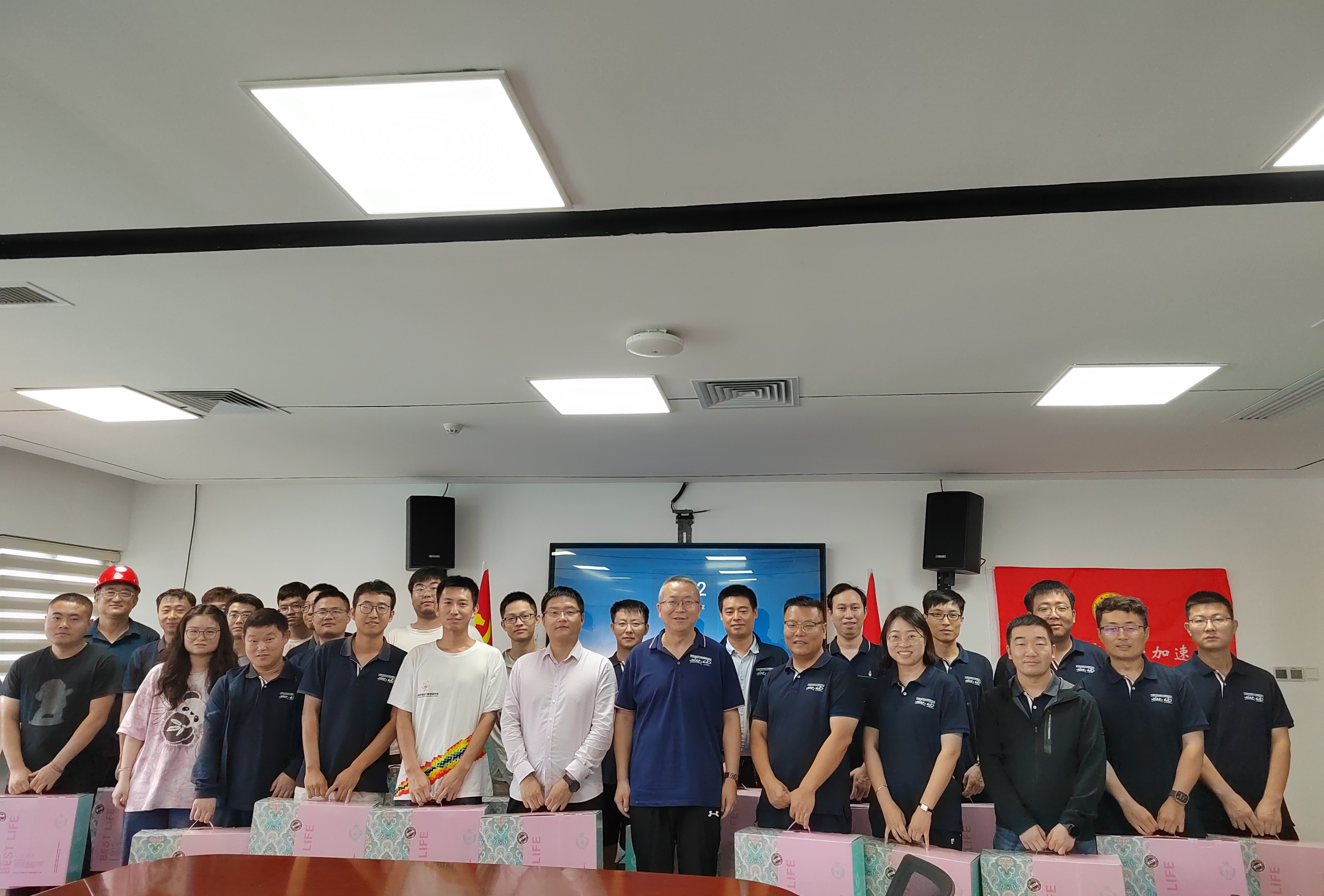座談會(huì)后,何源代表所領(lǐng)導(dǎo)班子為大家發(fā)放了慰問(wèn)品,叮囑大家異地作戰(zhàn),施工過(guò)程中必要高度重視人員安全和設(shè)備安全,做好家庭、工作平衡,遇到生活問(wèn)題及時(shí)反映,多疏導(dǎo)多調(diào)節(jié),健康快樂(lè)生活,安心踏實(shí)工作?,F(xiàn)場(chǎng)安裝團(tuán)隊(duì)對(duì)所領(lǐng)導(dǎo)班子的關(guān)懷表示衷心感謝,將保質(zhì)保量完成兩大科學(xué)裝置安裝調(diào)試工作。