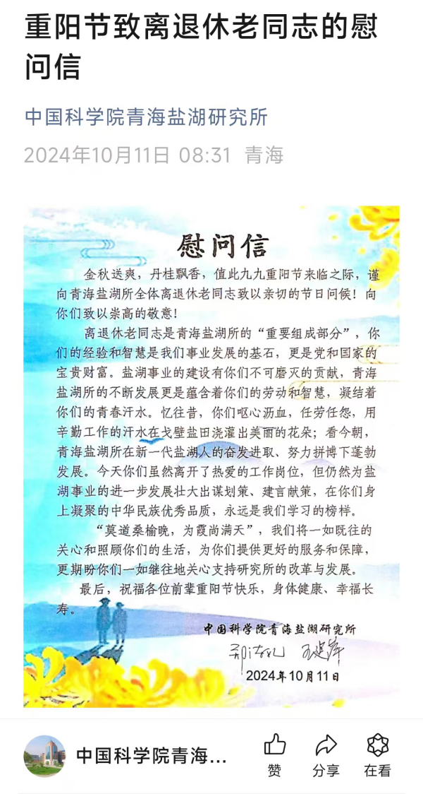 青海鹽湖所開(kāi)展離退休老同志重陽(yáng)節(jié)關(guān)愛(ài)活動(dòng)