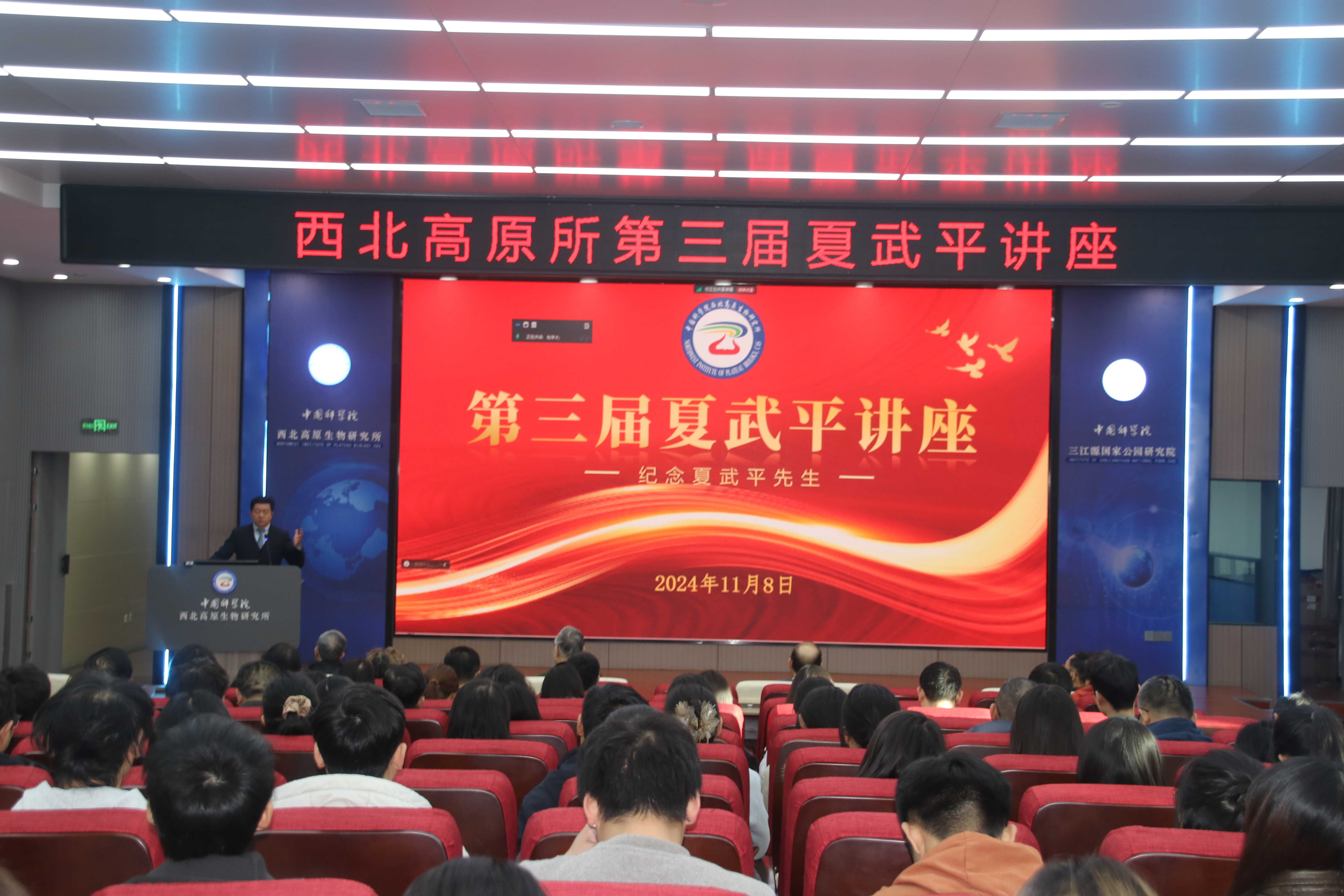 正值中國科學(xué)院成立75周年之際,為更好弘揚(yáng)科學(xué)家精神,激勵(lì)全所職工勇于創(chuàng)新、敢于擔(dān)當(dāng),不斷攀登科技高峰,11月8日上午,中國科學(xué)院西北高原生物研究所舉辦了“夏武平雕像揭幕儀式暨第三屆夏武平講座”活動(dòng)。西北高原所所長、黨委書記陳世龍,黨委副書記王萍,副所長魏立新、楊其恩和紀(jì)委書記馬忠漢出席了活動(dòng),夏武平先生之子夏經(jīng)林,中國科學(xué)院動(dòng)物研究所研究員蔣志剛和西北高原所全體職工、研究生應(yīng)邀參加活動(dòng)。此次揭幕儀式由王萍主持,陳世龍致辭。