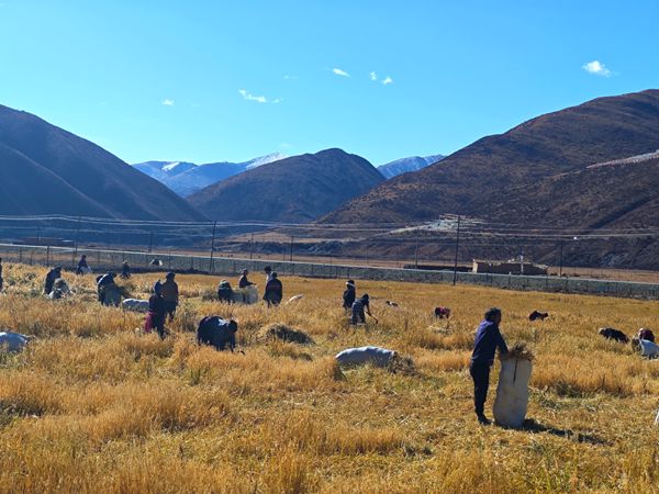 11月3日,為檢驗(yàn)優(yōu)質(zhì)燕麥品種和高產(chǎn)青稞品種在高海拔地區(qū)的產(chǎn)量,牧羊村“兩委”和駐村工作隊(duì)組織牧民開(kāi)展青稞、燕麥?zhǔn)崭罟ぷ?。由于播種時(shí)間較晚,加之生育期降水較多,燕麥存在結(jié)實(shí)率低,籽粒不飽滿問(wèn)題,青稞雖長(zhǎng)勢(shì)良好,植株較高,但出現(xiàn)部分倒伏情況。