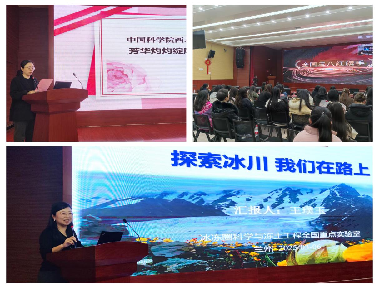 3月6日,婦委會組織女職工、女研究生集中觀看了中國科學院“搶占科技制高點 巾幗建功助攻堅”先進事跡報告會,聆聽了2024年度全國三八紅旗手、全國巾幗文明崗、中央和國家機關三八紅旗手等獲獎代表的感人事跡,感悟新時代女性科技工作者勇攀高峰的拼搏精神。隨后,婦委會主任孟憲紅研究員主持召開了西北研究院專題報告會,紀委書記袁小華代表領導班子向全體女職工致以節(jié)日問候和美好祝愿,感謝大家為西北研究院科技創(chuàng)新事業(yè)作出的重要貢獻,并鼓勵全體女職工以更加昂揚的精神面貌,在各自崗位上繼續(xù)拼搏奮斗。青年女科學家王璞玉研究員以《探索冰川 我們在路上》為題,分享了自己和團隊扎根冰川的科研往事,為大家?guī)砹艘粓隹茖W與情懷交織的精神盛宴。