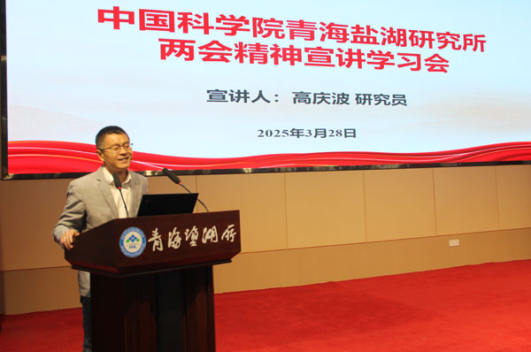為深入學(xué)習(xí)貫徹2025年全國兩會精神,全面落實(shí)習(xí)近平總書記重要講話及政府工作報告核心要義,中國科學(xué)院青海鹽湖研究所于3月28日在學(xué)術(shù)報告廳舉辦貫徹落實(shí)2025年全國兩會精神主題宣講學(xué)習(xí)會。會議特邀全國政協(xié)委員、西北高原所研究員高慶波作主題宣講,會議由黨委副書記、副所長王建萍主持,青海鹽湖所全體職工和研究生參加會議。