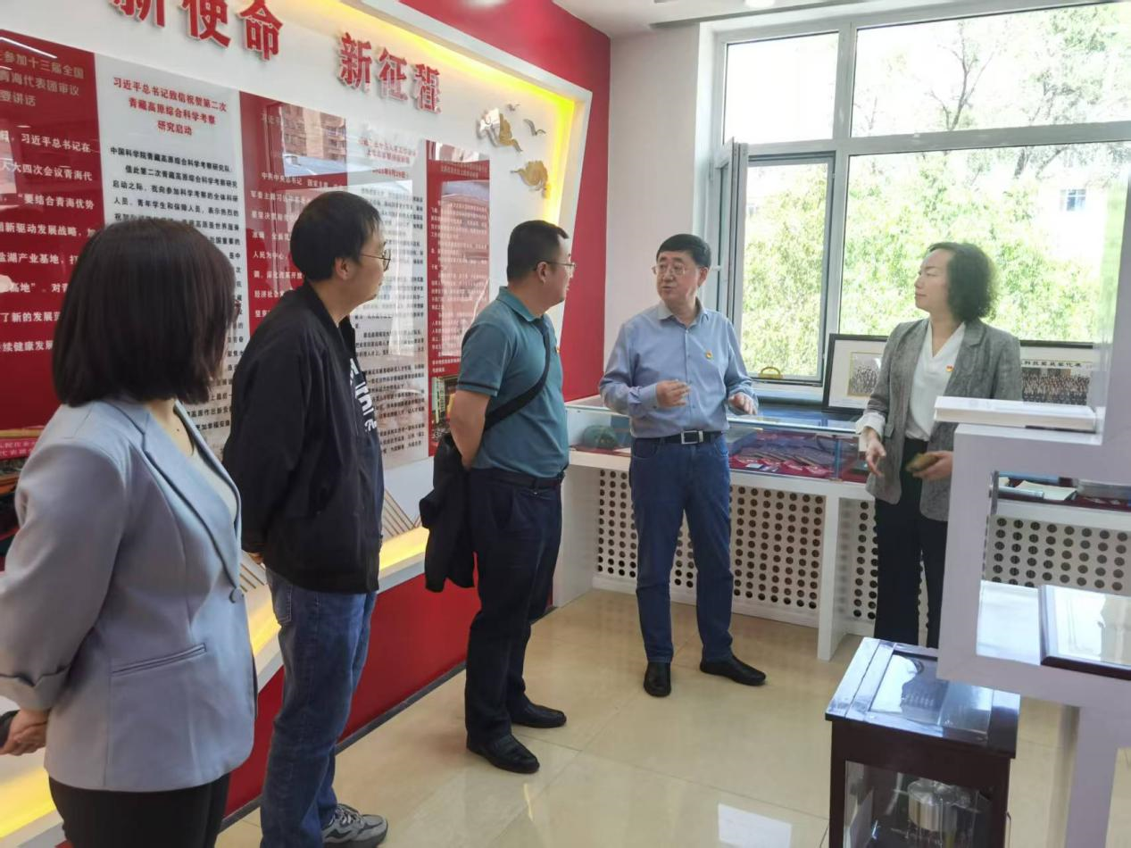 會(huì)后,與會(huì)黨員參觀了鹽湖科技展廳、黨建所史展覽室,青海鹽湖所副所長(zhǎng)(主持工作)鄭詩(shī)禮陪同參觀。