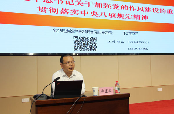 會議首先邀請青海省委黨校和寶軍副教授作題為《深入學(xué)習(xí)習(xí)近平總書記關(guān)于加強(qiáng)黨的作風(fēng)建設(shè)的重要論述 貫徹落實(shí)中央八項(xiàng)規(guī)定精神》的專題黨課報(bào)告。報(bào)告強(qiáng)調(diào)要充分認(rèn)識深入貫徹中央八項(xiàng)規(guī)定精神學(xué)習(xí)教育的重大意義,深刻領(lǐng)悟把握中央八項(xiàng)規(guī)定精神的核心要義與實(shí)踐要求,扎實(shí)推進(jìn)深入貫徹中央八項(xiàng)規(guī)定精神學(xué)習(xí)教育走深、走實(shí)。報(bào)告主題鮮明,重點(diǎn)突出,對全所黨員干部深入貫徹落實(shí)中央八項(xiàng)規(guī)定精神具有重要的指導(dǎo)意義。