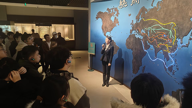 在八路軍蘭州辦事處紀念館酒泉路舊址大家參觀了八路軍駐甘辦事處與甘肅抗日救亡展覽和八路軍駐甘辦事處原狀陳列展覽,瞻仰了八路軍蘭州辦事處革命舊址,全面解了黨中央在這里宣傳民族抗日統(tǒng)一戰(zhàn)線,開展抗日救亡活動,輸送進步人士到延安,指導和創(chuàng)建進步團體,營救紅西路軍失散人員等情況。在甘南路舊址參觀了中國工農(nóng)紅軍西路軍事跡展、紅軍聯(lián)絡處原狀陳列展,學習了中國工農(nóng)紅軍西路軍在征戰(zhàn)河西走廊期間,為打通國際路線、策應河東紅軍、策應“西安事變”和平解決寫下可歌可泣的壯麗篇章。在甘肅省博物館絲綢之路文明、甘肅彩陶等展館,大家了解了絲綢之路的發(fā)展歷程、民俗文化,以及甘肅省深厚的人文歷史文化底蘊和特色文化資源。
