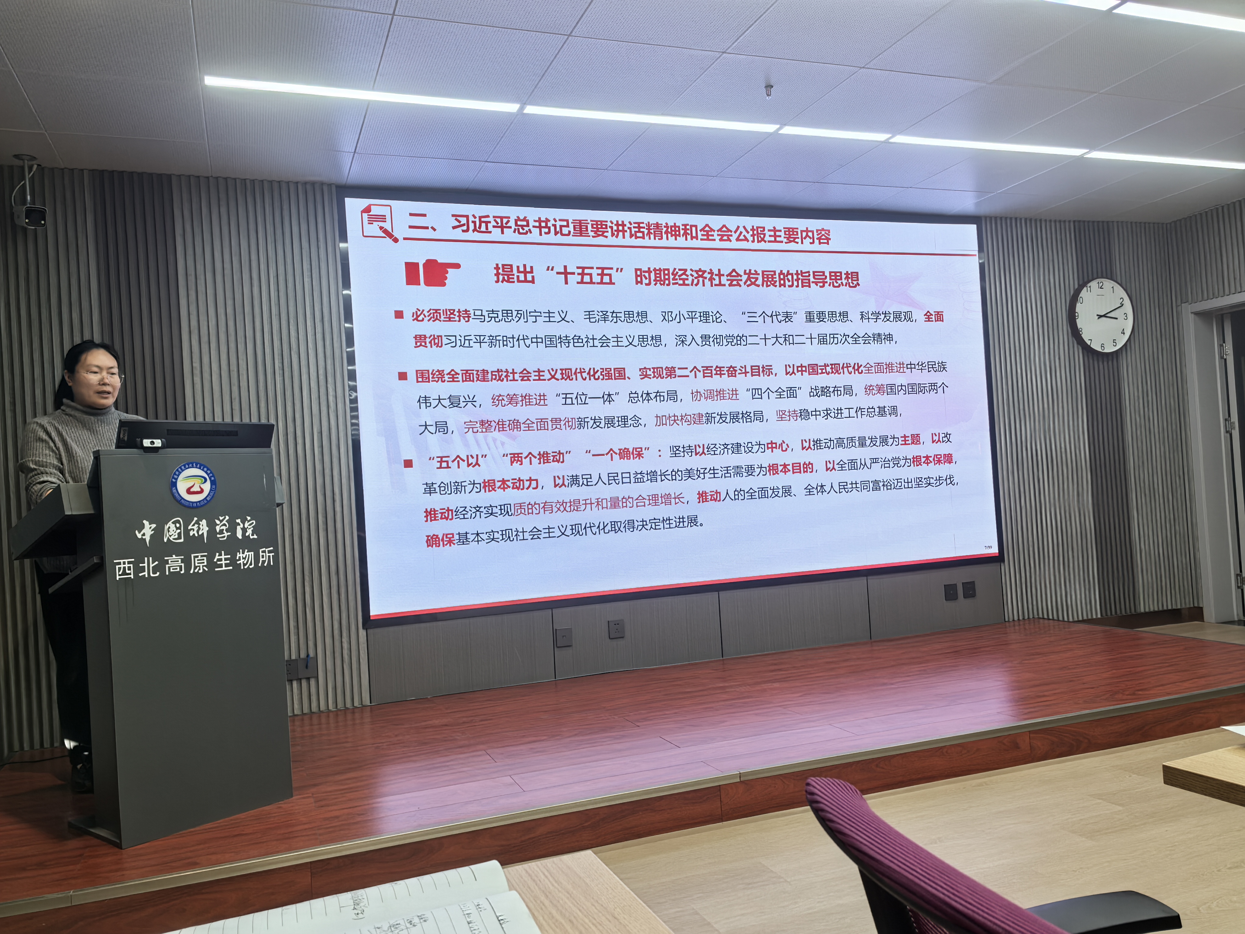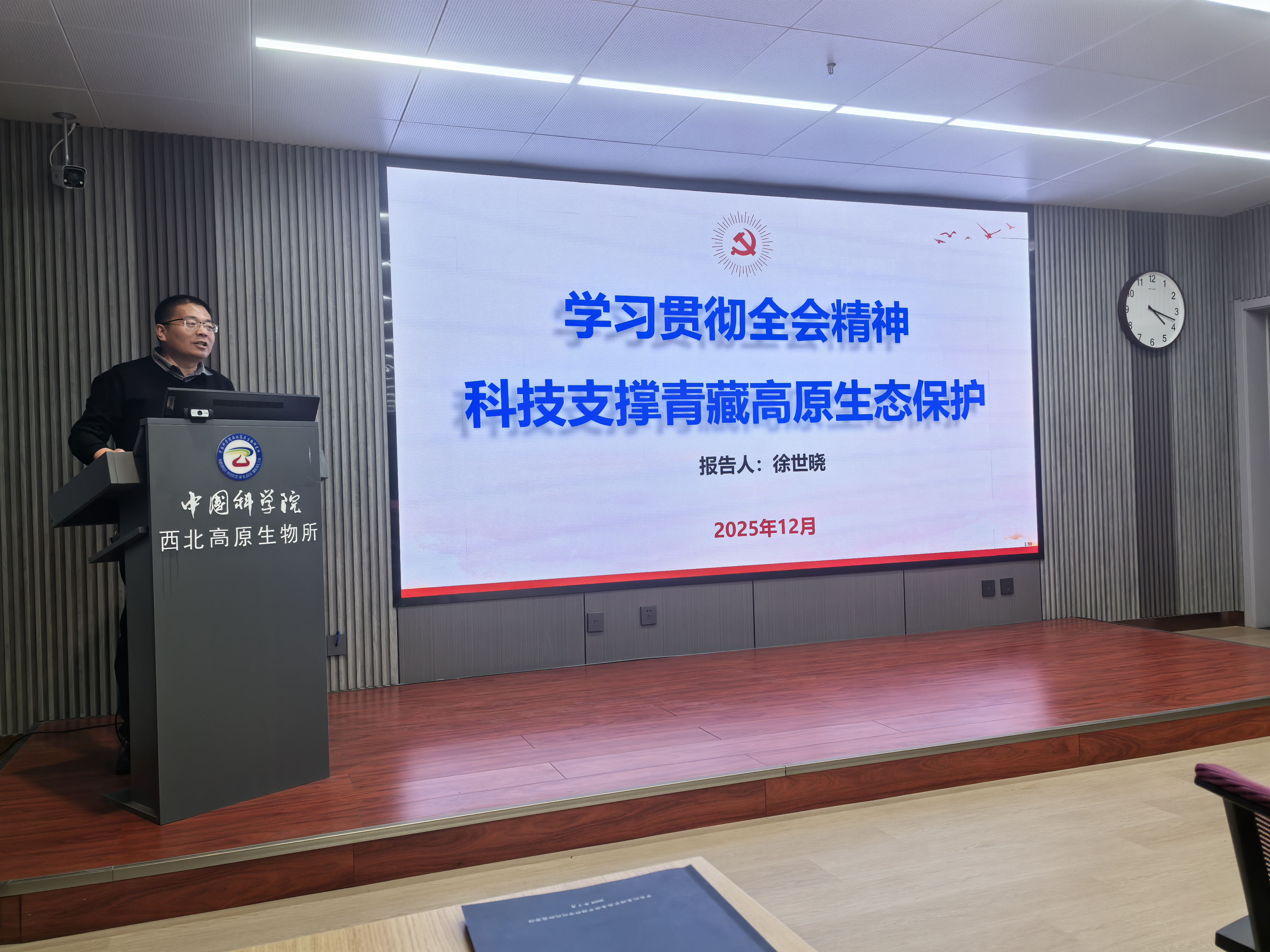 隨后,黨委委員、支部聯(lián)系人徐世曉以“學(xué)習(xí)貫徹全會(huì)精神?科技支撐青藏高原生態(tài)保護(hù)”為題講授黨課,黨課內(nèi)涵豐富、指導(dǎo)性強(qiáng),緊密結(jié)合對(duì)全會(huì)精神的深刻領(lǐng)悟,聚焦青藏高原生態(tài)保護(hù)這一“國(guó)之大者”,深入闡述了科技工作者的時(shí)代責(zé)任與使命擔(dān)當(dāng)。