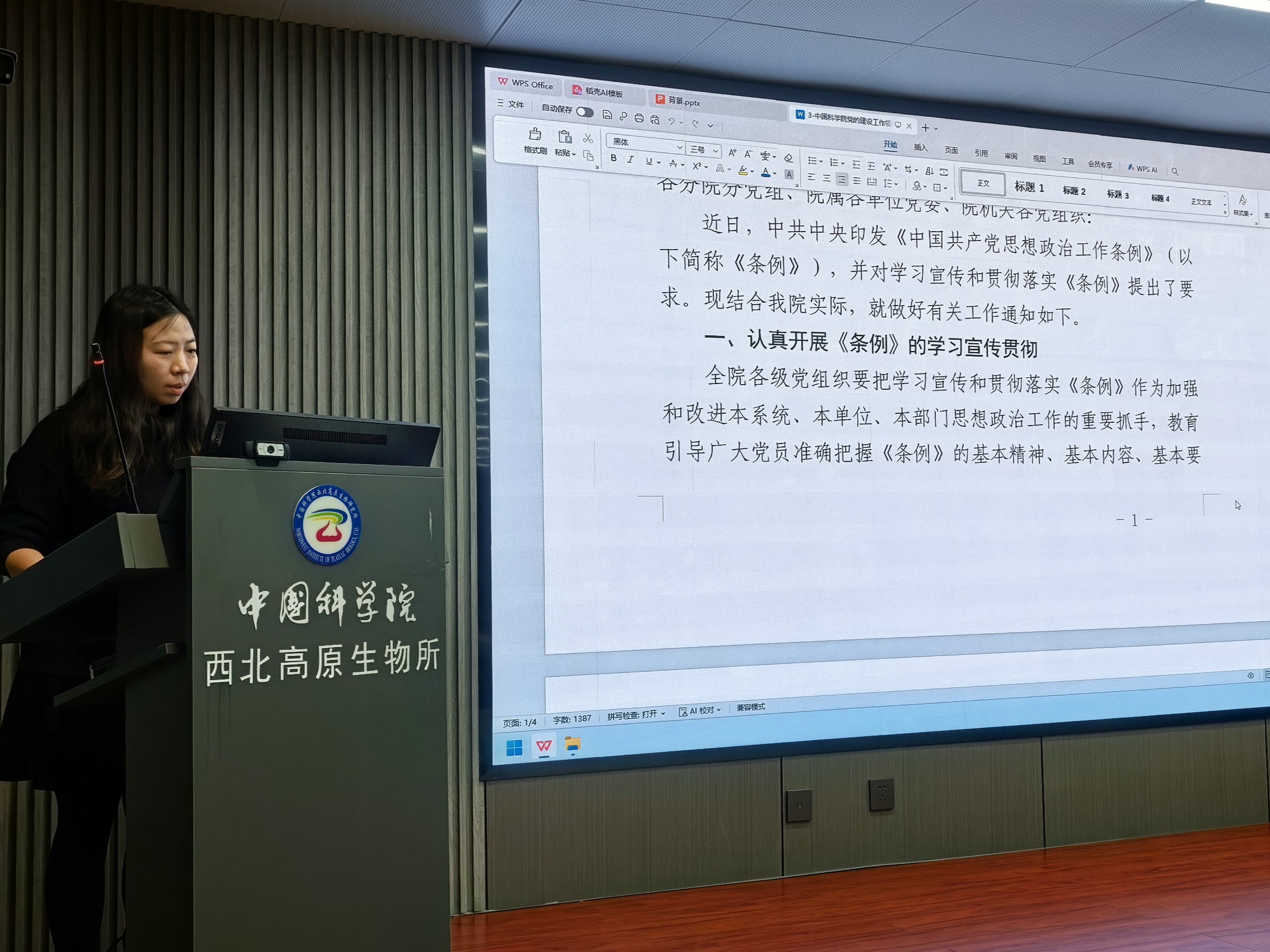 西北高原所資源中心黨支部召開(kāi)支部大會(huì)傳達(dá)學(xué)習(xí)貫徹黨的二十屆四中全會(huì)精神