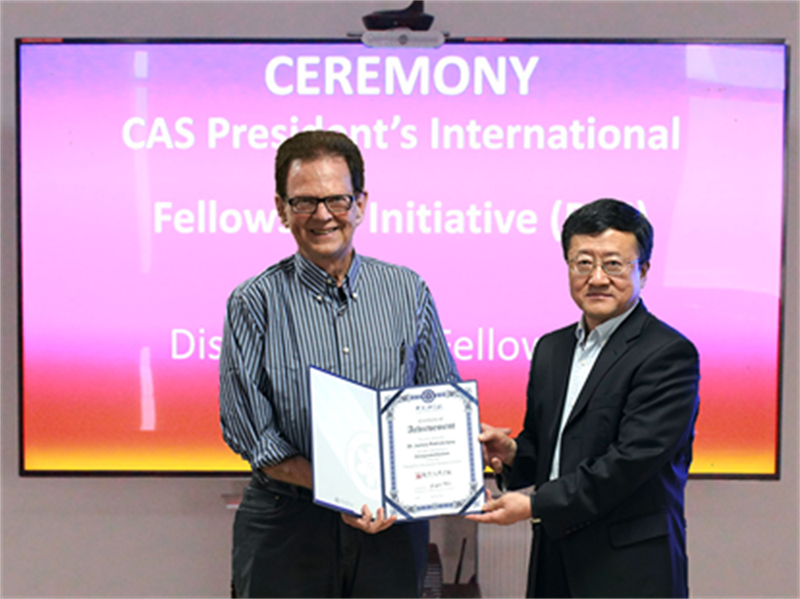 圖1:趙紅衛(wèi)為James P. Vary教授頒發(fā)中國科學(xué)院國際人才計劃杰出科學(xué)家獎狀