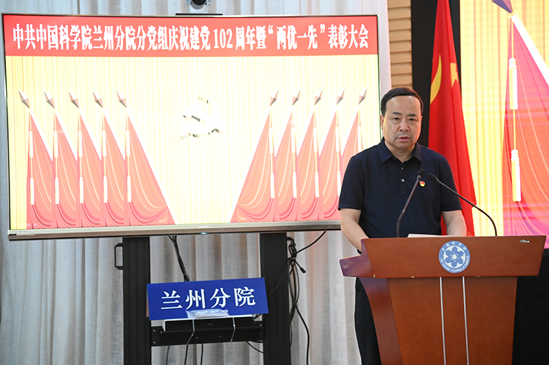 為慶祝中國共產(chǎn)黨成立102周年,深入開展學習貫徹習近平新時代中國特色社會主義思想主題教育,中共中國科學院蘭州分院分黨組、中共中國科學院蘭州分院系統(tǒng)單位委員會于6月26日召開慶祝中國共產(chǎn)黨成立102周年暨“兩優(yōu)一先”表彰大會。分黨組、系統(tǒng)單位黨委領(lǐng)導(dǎo)班子成員,蘭州、西寧地區(qū)院屬各單位黨委領(lǐng)導(dǎo)同志、黨辦主任,分院機關(guān)高級業(yè)務(wù)主管四級職員、各部門負責人、各黨支部(總支)書記以及受表彰的“兩優(yōu)一先”人員參加會議。會議由蘭州分院分黨組副書記、系統(tǒng)單位黨委副書記陳改學主持。