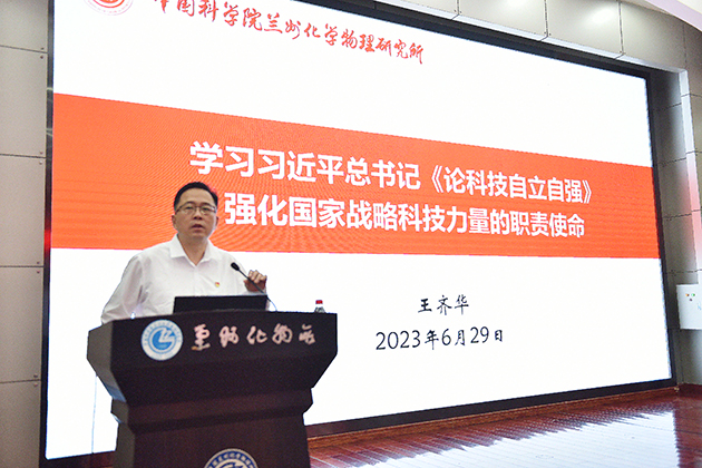 6月29日下午,中國科學(xué)院蘭州化學(xué)物理研究所舉行慶祝建黨102周年專題黨課報告會暨革命傳統(tǒng)教育活動。全所黨員干部職工和研究生黨員、離退休黨員代表和民主黨派代表參加會議。黨委委員、副所長張俊彥主持會議。