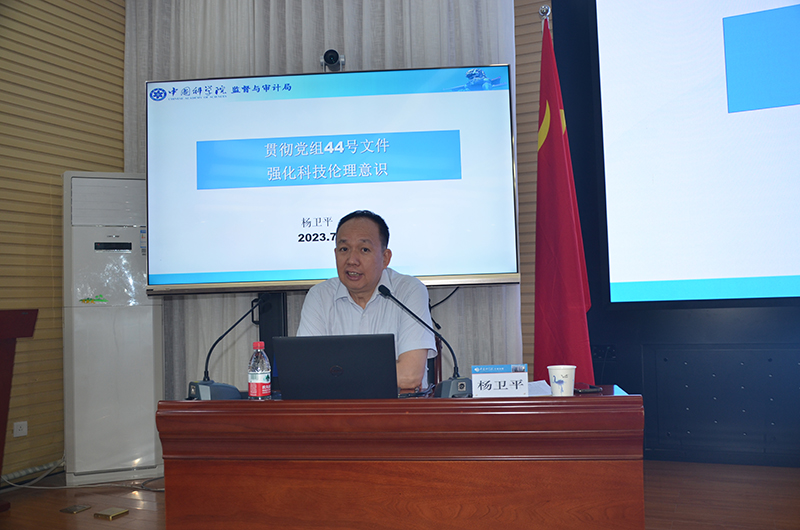 為貫徹落實(shí)中國科學(xué)院加強(qiáng)科技倫理治理的相關(guān)文件精神,進(jìn)一步完善科技倫理體系,提升科技倫理治理能力,有效防控科技倫理風(fēng)險(xiǎn),7月18日,中國科學(xué)院蘭州分院組織在蘭系統(tǒng)單位參加科技倫理宣講專題講座,特邀中國科學(xué)院監(jiān)督與審計(jì)局局長楊衛(wèi)平宣講。專題講座由蘭州分院紀(jì)檢組組長、分黨組成員吳建剛主持。