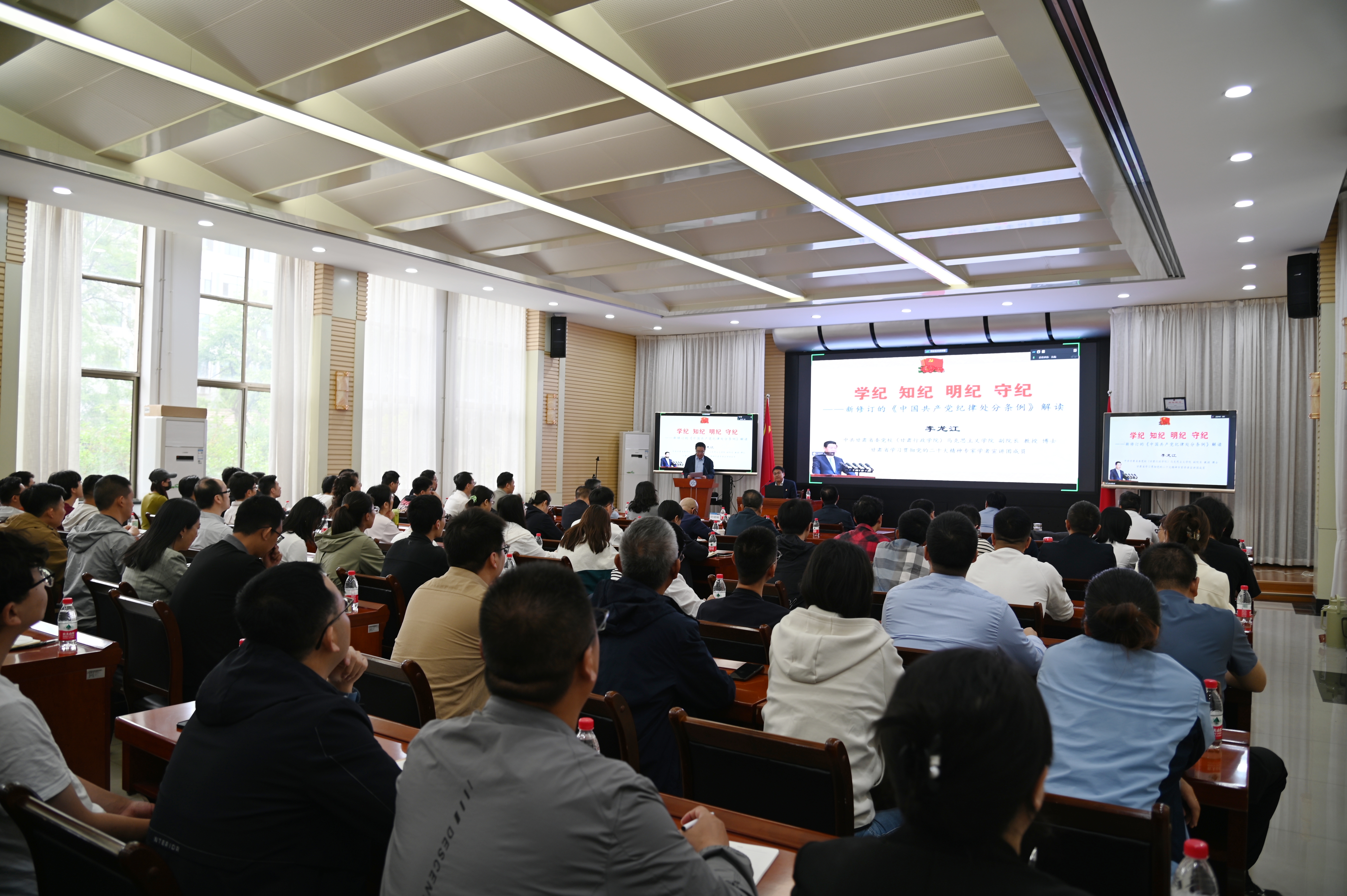 為扎實有序推進(jìn)黨紀(jì)學(xué)習(xí)教育,5月10日,中國科學(xué)院蘭州分院分黨組舉辦黨紀(jì)學(xué)習(xí)教育專題輔導(dǎo)報告會。特邀甘肅省委黨校馬克思主義學(xué)院副院長、教授李龍江圍繞新修訂的《中國共產(chǎn)黨紀(jì)律處分條例》作專題輔導(dǎo)報告。