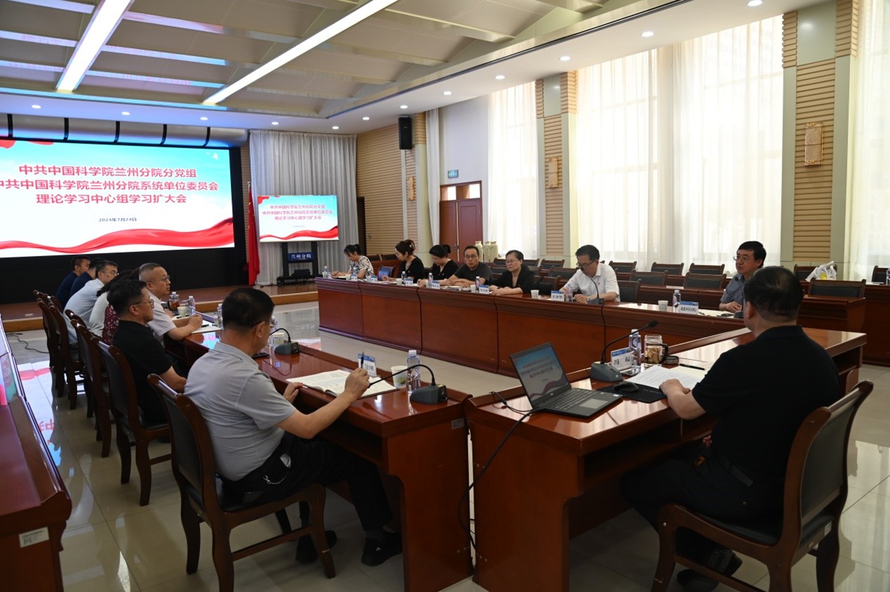 7月24日下午,中國(guó)科學(xué)院蘭州分院分黨組、蘭州分院系統(tǒng)單位黨委召開(kāi)理論學(xué)習(xí)中心組學(xué)習(xí)擴(kuò)大會(huì)議,傳達(dá)學(xué)習(xí)黨的二十屆三中全會(huì)精神。會(huì)議由蘭州分院分黨組書(shū)記、院長(zhǎng)馮起主持,蘭州分院分黨組成員、系統(tǒng)單位黨委委員、分院機(jī)關(guān)黨委委員、高級(jí)業(yè)務(wù)主管四級(jí)職員,各部門(mén)負(fù)責(zé)人參加會(huì)議。