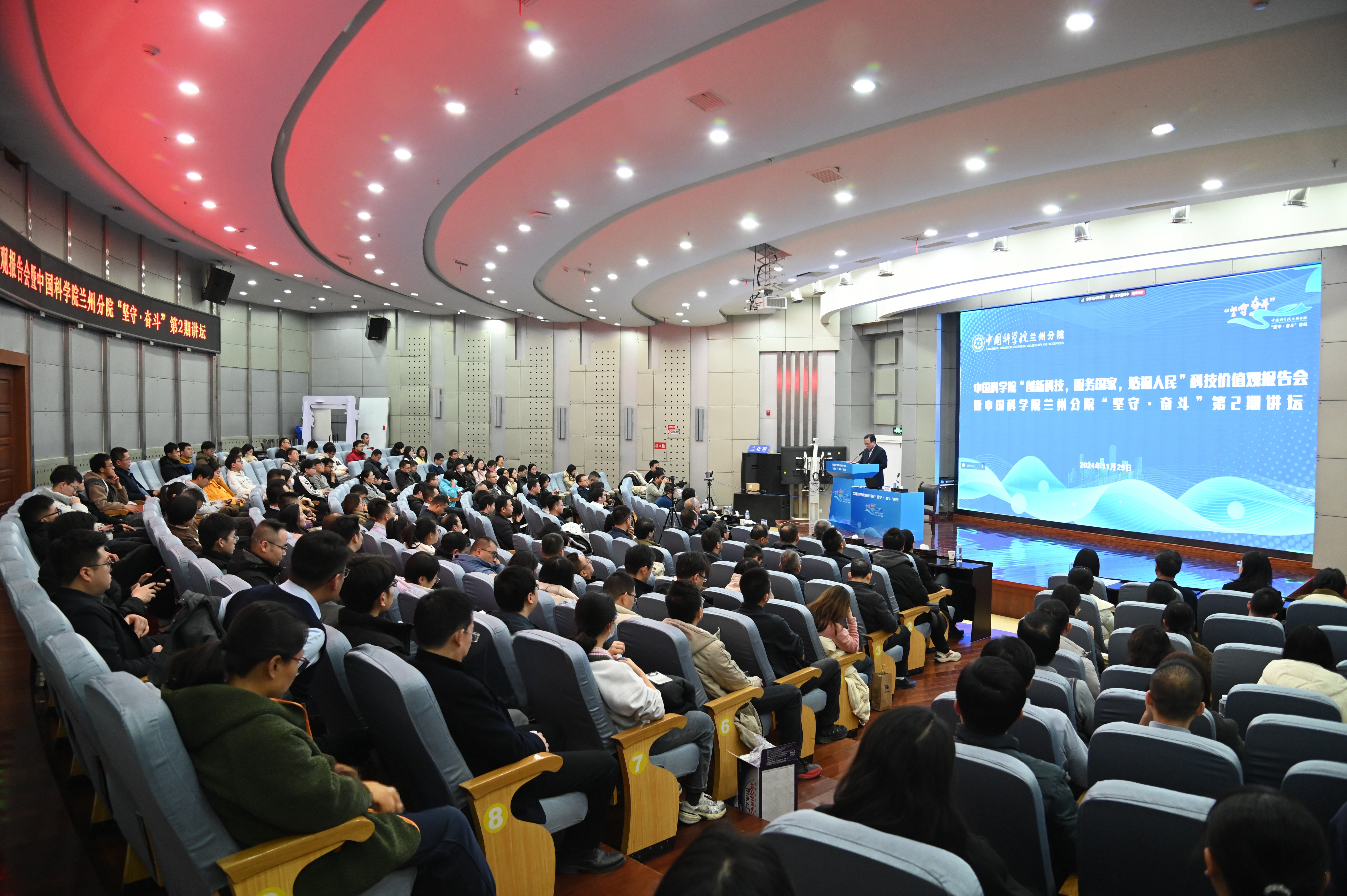 11月29日,中國科學(xué)院“創(chuàng)新科技、服務(wù)國家、造福人民”科技價(jià)值觀報(bào)告會(huì)暨中國科學(xué)院蘭州分院“堅(jiān)守·奮斗”第2期講壇在蘭州化學(xué)物理研究所舉行,報(bào)告會(huì)邀請(qǐng)材料化學(xué)和潤滑材料專家、中國工程院院士薛群基作《讓我們一起學(xué)習(xí)科學(xué)家精神》專題報(bào)告。