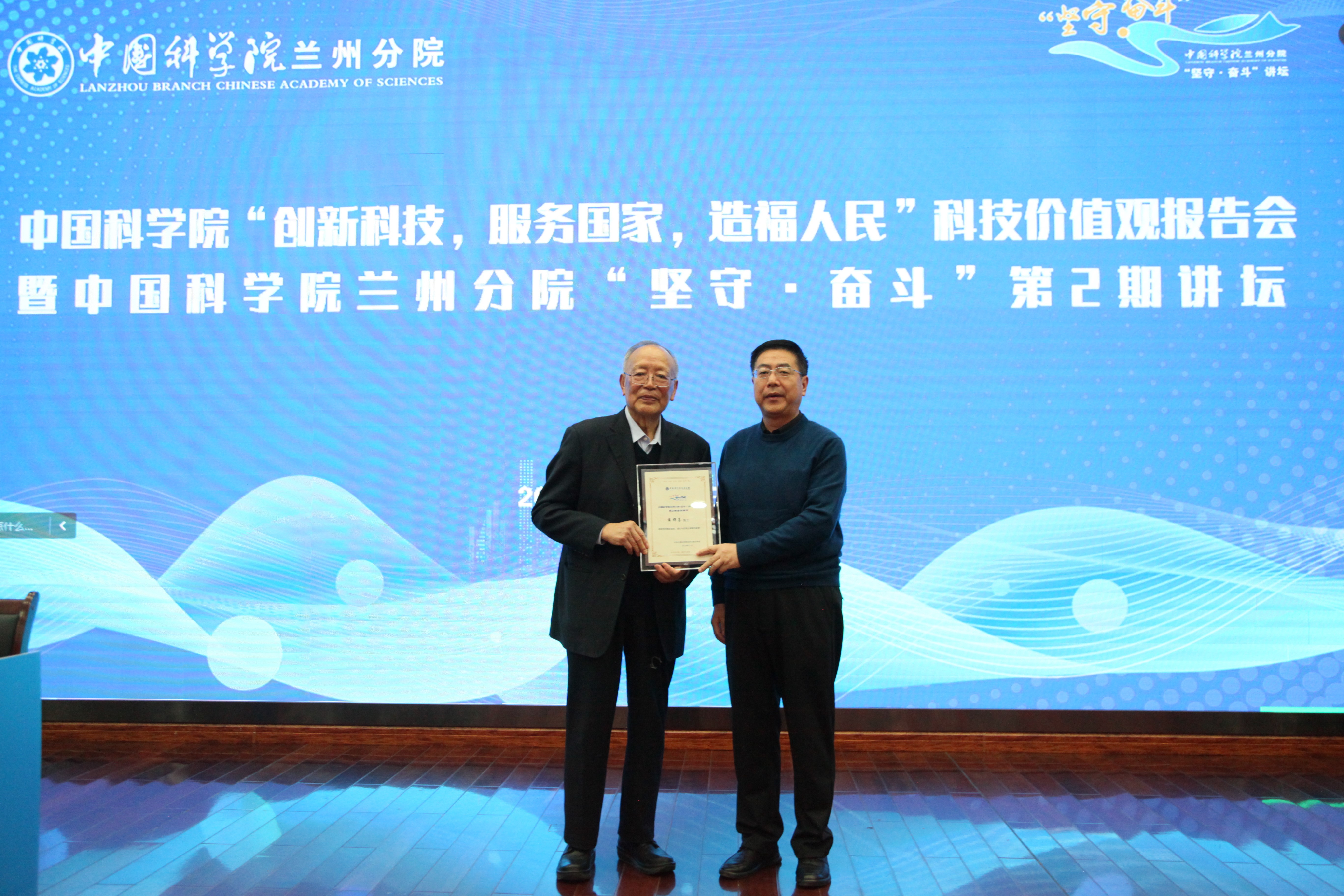 蘭州分院分黨組成員、紀(jì)檢組組長吳建剛為薛群基院士頒發(fā)宣講證書,并號(hào)召分院系統(tǒng)科研人員和研究生向以薛群基院士為代表的老一輩科學(xué)家們學(xué)習(xí),用實(shí)際行動(dòng)詮釋心系“國家事”、肩扛“國家責(zé)”,把科學(xué)家精神融入實(shí)驗(yàn)操作、體現(xiàn)在學(xué)術(shù)論文、貫穿于科研項(xiàng)目始終。蘭州分院分黨組也將繼續(xù)大力支持“堅(jiān)守·奮斗”講壇、科學(xué)家精神基地和黨員主題教育基地等平臺(tái)建設(shè),大力弘揚(yáng)科學(xué)家精神,積極宣傳先進(jìn)典型,為搶占科技制高點(diǎn)營造良好的科研氛圍。