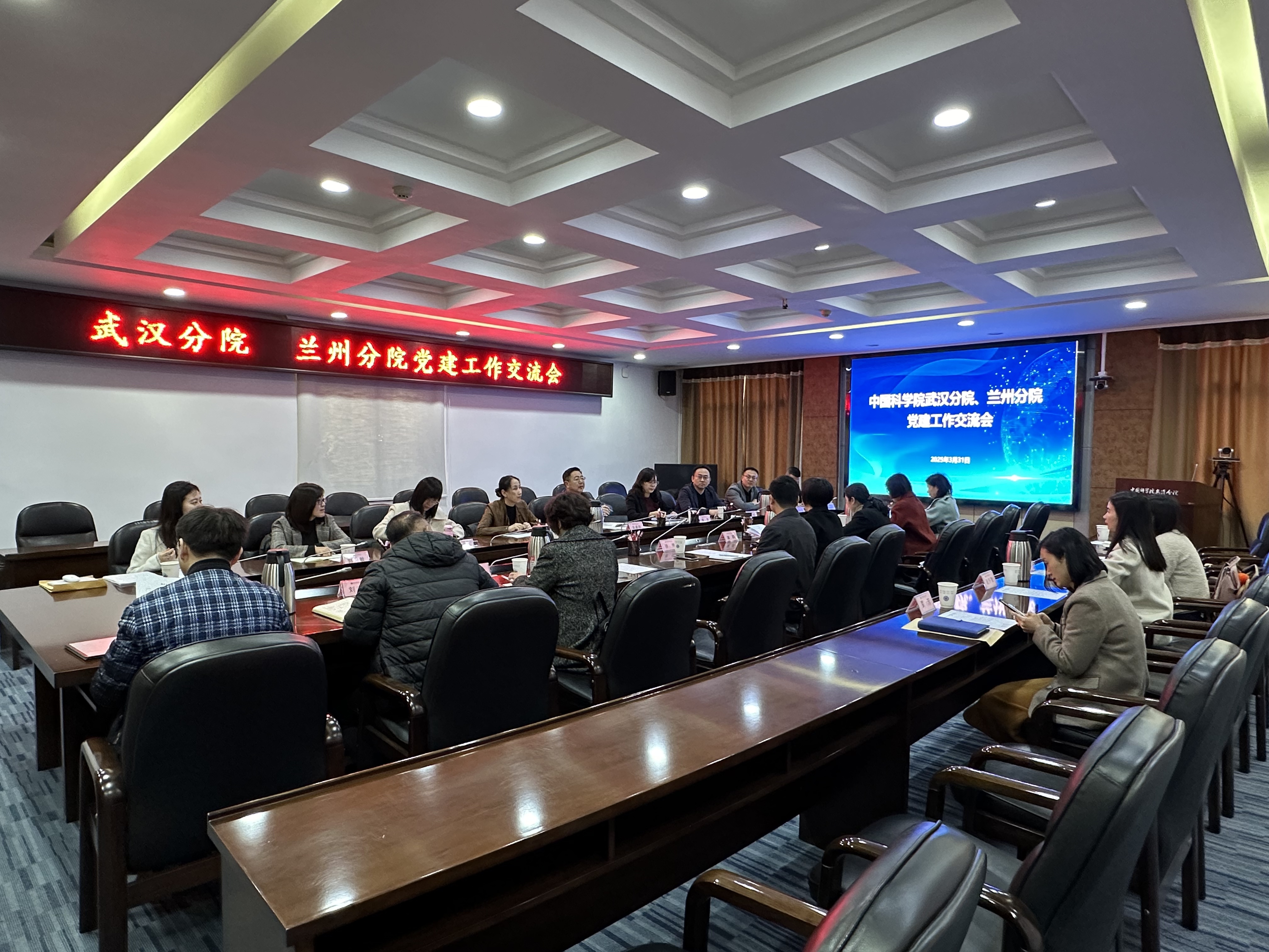 為促進(jìn)黨建工作經(jīng)驗(yàn)互學(xué)互鑒,進(jìn)一步提升黨建工作質(zhì)量,3月31日至4月1日,中國科學(xué)院蘭州分院分黨組成員、紀(jì)檢組組長吳建剛帶領(lǐng)蘭州分院系統(tǒng)黨辦主任、黨務(wù)干部與武漢分院開展黨建工作調(diào)研交流。武漢分院、蘭州分院系統(tǒng)各單位黨辦主任及黨務(wù)干部20余人參加黨建工作交流會(huì),會(huì)議由武漢分院分黨組副書記曾靜主持。