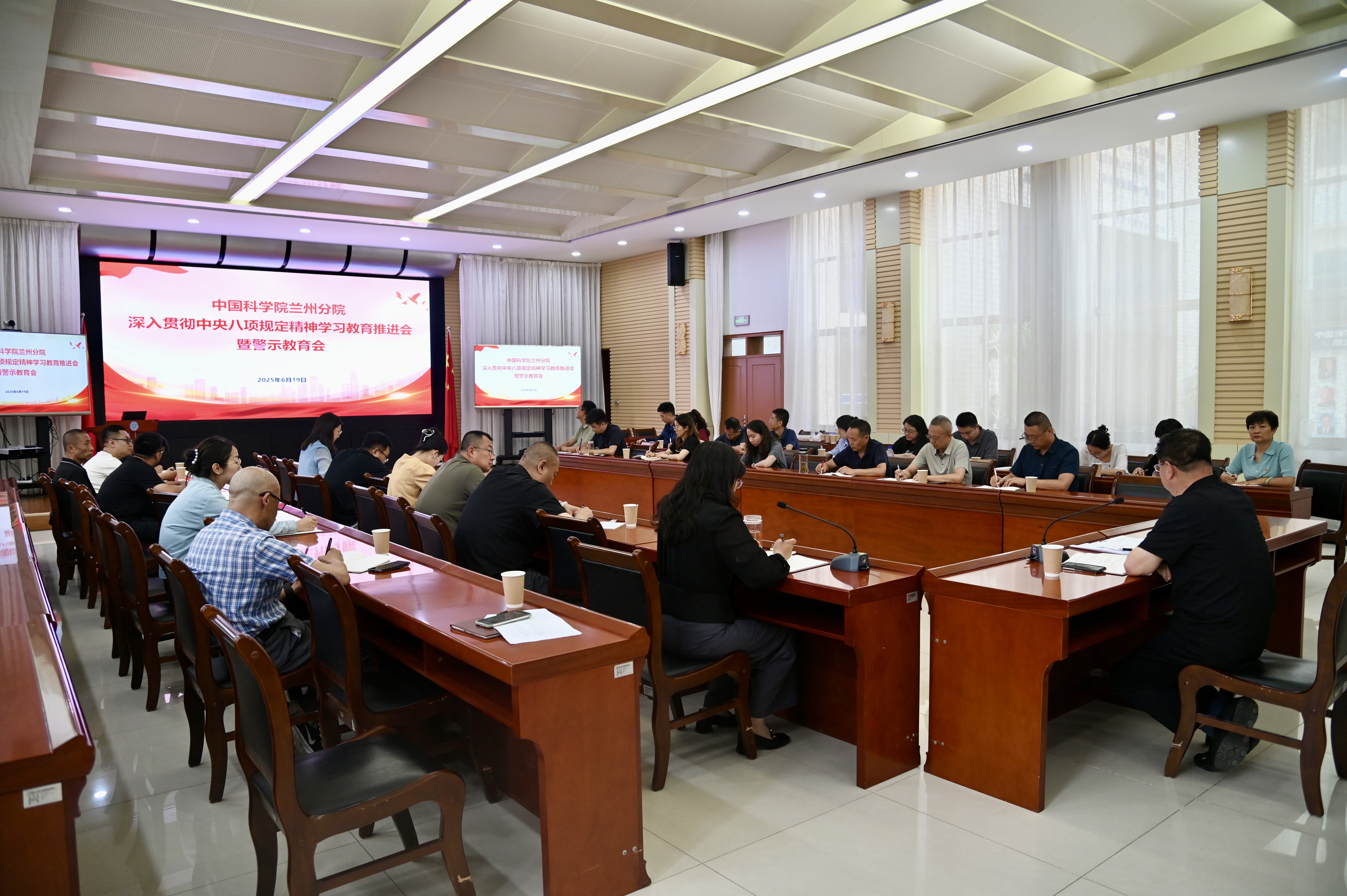 6月19日下午,中國科學(xué)院蘭州分院機(jī)關(guān)召開深入貫徹中央八項(xiàng)規(guī)定精神學(xué)習(xí)教育推進(jìn)會(huì)暨警示教育會(huì)。會(huì)議由蘭州分院分黨組成員、紀(jì)檢組組長吳建剛主持。機(jī)關(guān)黨委委員、紀(jì)委委員、高級(jí)業(yè)務(wù)主管四級(jí)職員、各部門負(fù)責(zé)人、各黨支部書記,機(jī)關(guān)在職全體黨員參加會(huì)議。