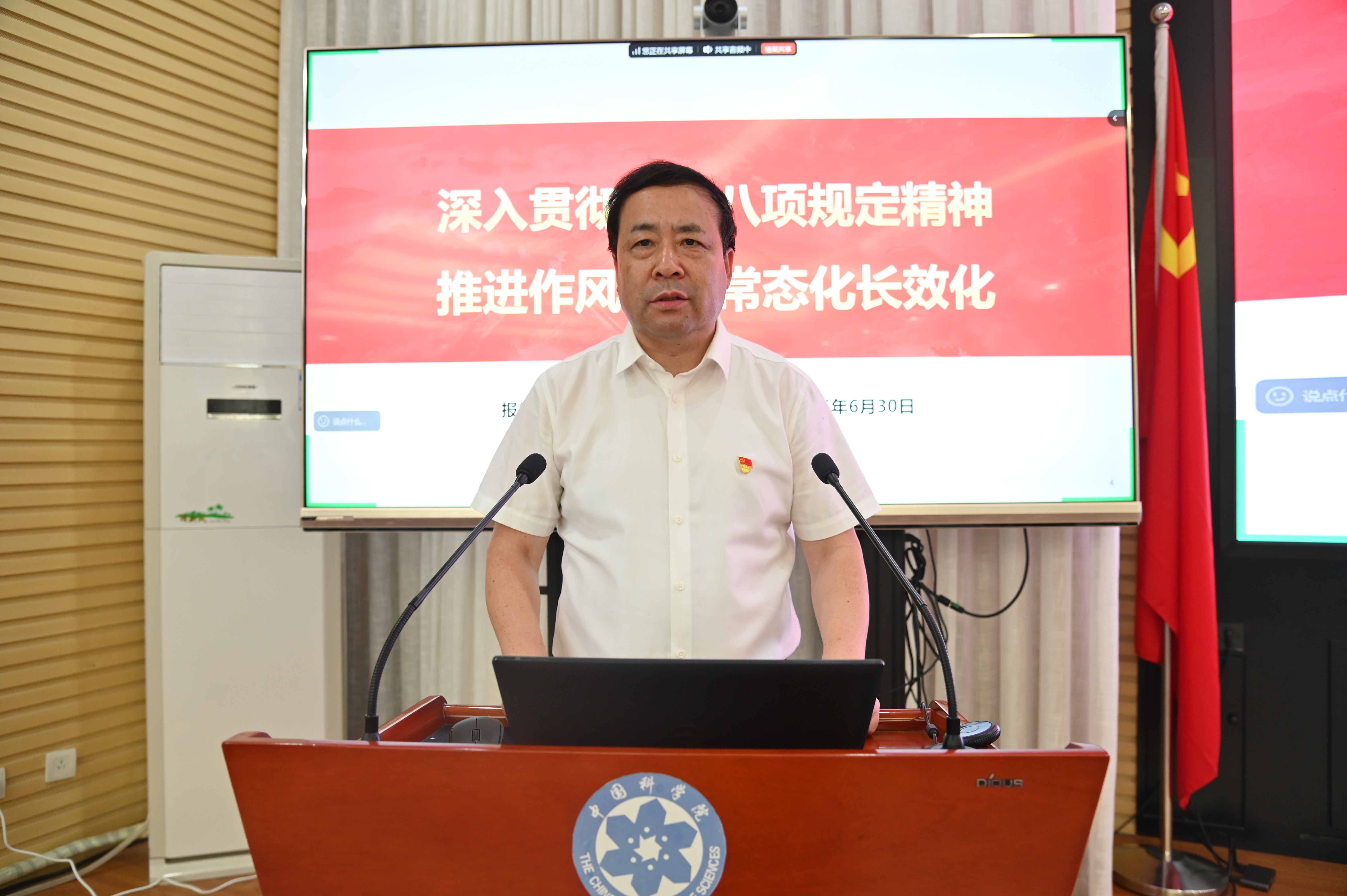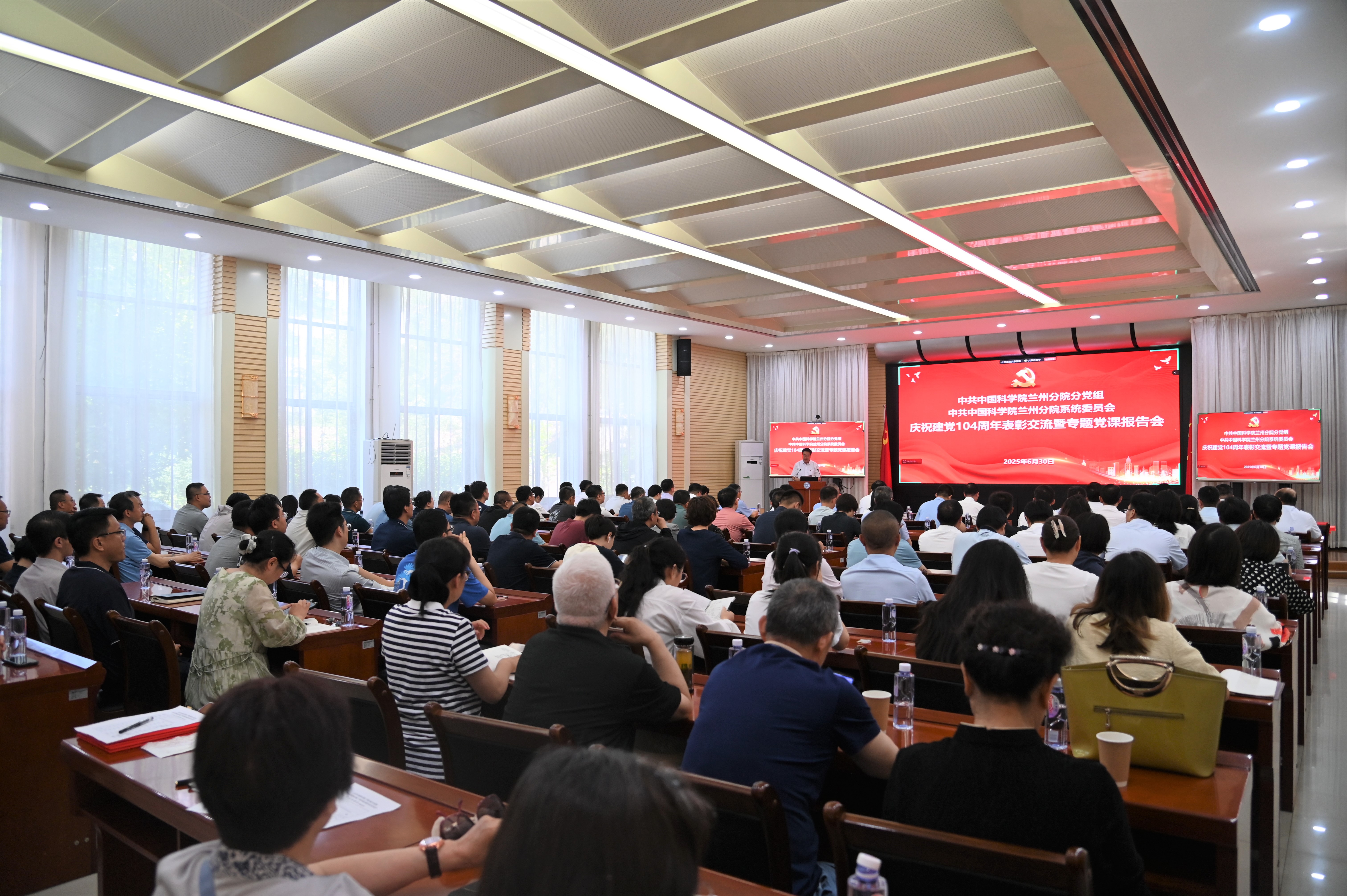 為慶祝中國共產(chǎn)黨成立104周年,推動深入貫徹中央八項規(guī)定精神學(xué)習(xí)教育走深走實,6月30日,中共中國科學(xué)院蘭州分院分黨組舉辦慶祝建黨104周年表彰交流暨專題黨課報告會。會議由蘭州分院分黨組成員、紀(jì)檢組組長吳建剛主持。
