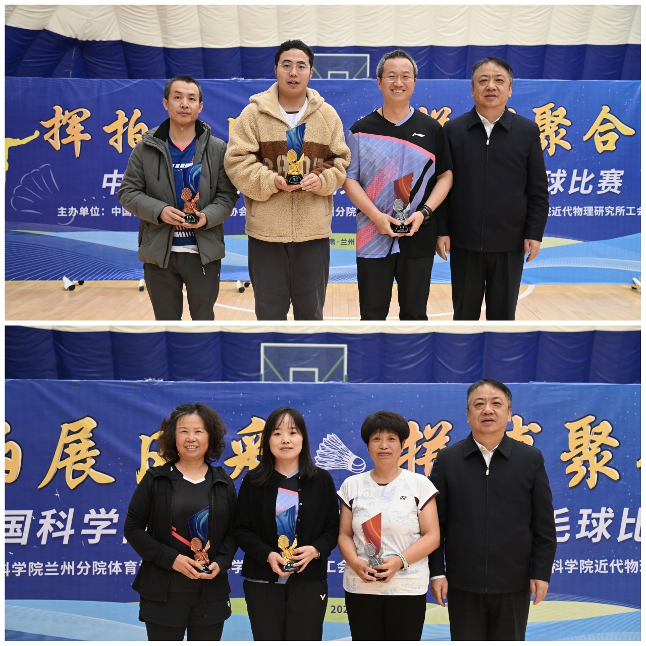 經(jīng)過激烈比拼,蘭州化物所、近代物理所、西北研究院代表隊(duì)分別獲混合團(tuán)體賽冠軍、亞軍和季軍;蘭州分院機(jī)關(guān)、青海鹽湖所和西北高原所代表隊(duì)分別獲優(yōu)秀組織獎(jiǎng)、團(tuán)結(jié)拼搏獎(jiǎng)和體育道德風(fēng)尚獎(jiǎng)。蘭州化物所文澤東、近代物理所封安輝和青海鹽湖所王懷有分別獲男子單打冠軍、亞軍和季軍;近代物理所吳曉霞、蘭州化物所楊恩芳和西北高原所陳曉澄分別獲女子單打冠軍、亞軍和季軍。