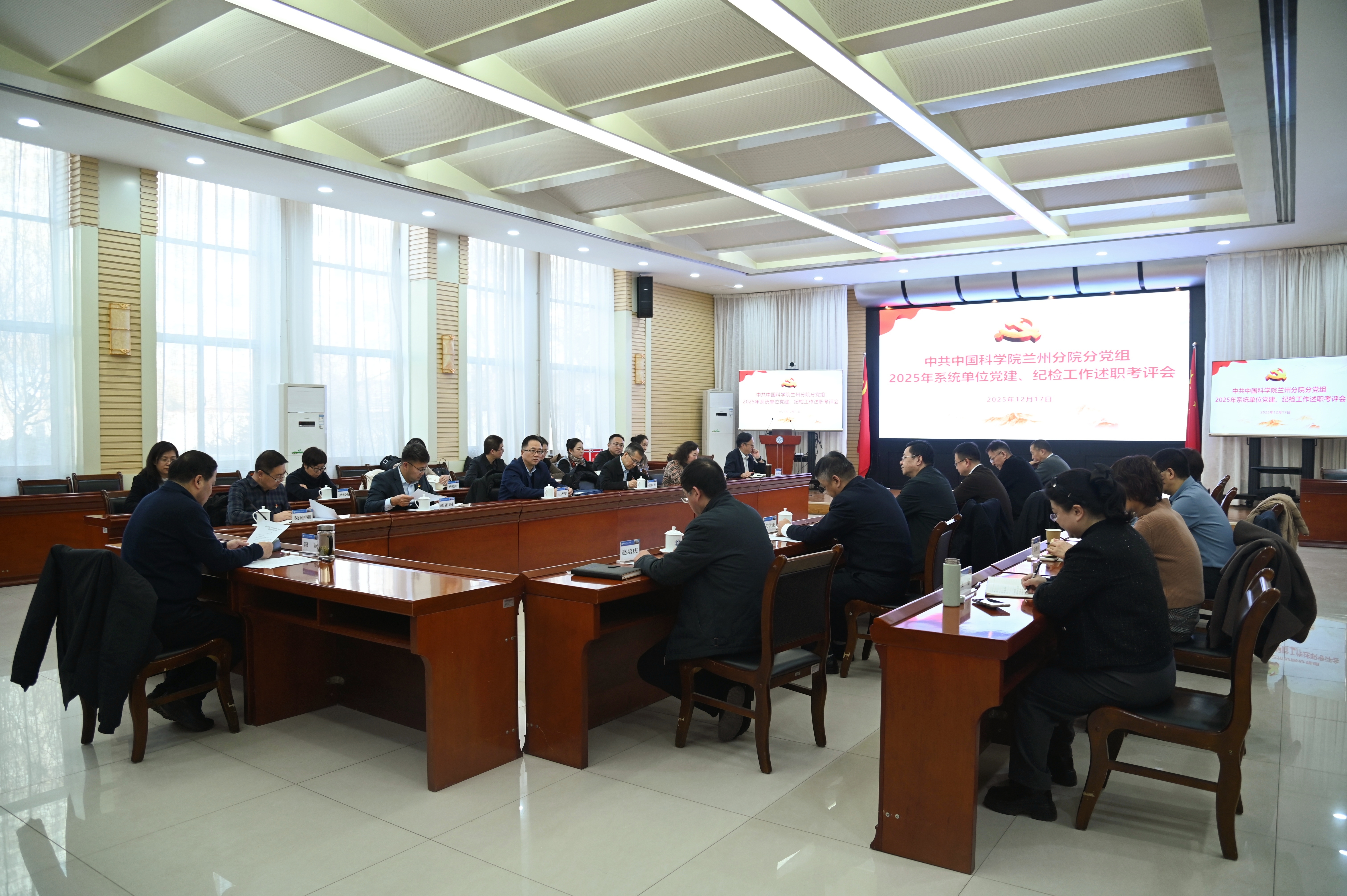 12月17日,中國(guó)科學(xué)院蘭州分院分黨組召開(kāi)2025年度分院系統(tǒng)黨建、紀(jì)檢工作述職考評(píng)會(huì)。分黨組領(lǐng)導(dǎo)班子成員,系統(tǒng)各單位黨委書(shū)記、紀(jì)委書(shū)記參加會(huì)議。會(huì)議由蘭州分院分黨組書(shū)記、院長(zhǎng)馮起主持。