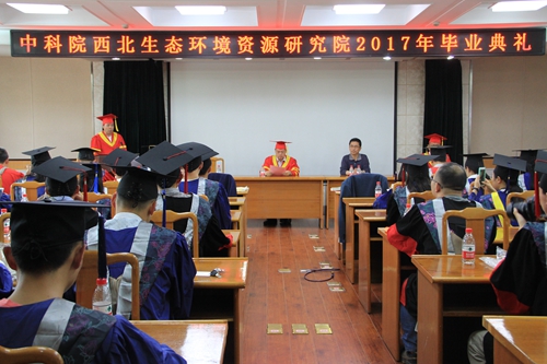 6月9日,中國(guó)科學(xué)院西北生態(tài)環(huán)境資源研究院(籌)(簡(jiǎn)稱西北研究院)2017年研究生畢業(yè)典禮隆重舉行。西北研究院黨委書(shū)記、副院長(zhǎng)謝銘,學(xué)位評(píng)定委員會(huì)主席、常務(wù)副院長(zhǎng)賴遠(yuǎn)明院士,副院長(zhǎng)馮起研究員,油氣中心主任夏燕青研究員,學(xué)位評(píng)定委員會(huì)委員代表,導(dǎo)師代表及2017屆畢業(yè)生近百人齊聚一堂見(jiàn)證莊嚴(yán)的時(shí)刻。典禮由馮起主持。
