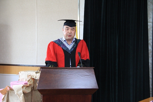 在莊嚴(yán)的國(guó)歌聲中典禮拉開(kāi)了序幕。賴遠(yuǎn)明首先宣讀了2017年學(xué)位擬授予決定。接著,謝銘在致詞中感謝同學(xué)們與西北研究院共同成長(zhǎng),祝愿同學(xué)們畢業(yè)后做出更好成績(jī)。