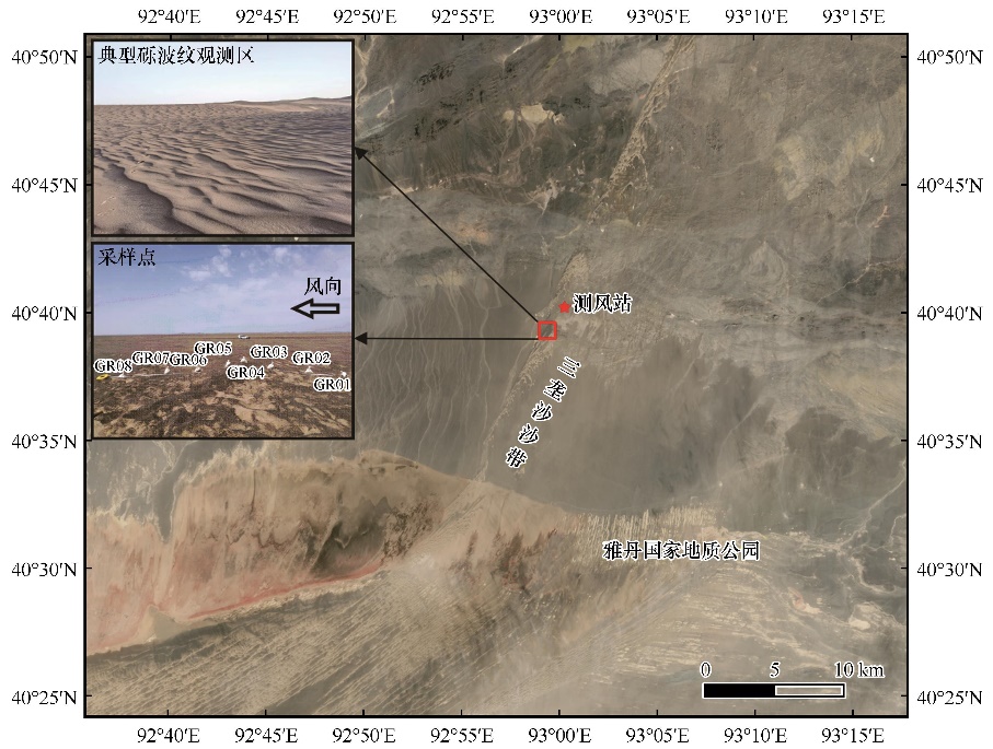 研究發(fā)現(xiàn),礫波紋的發(fā)育與風況和沉積物粒度密切相關。三壟沙地區(qū)的起沙風主要在春夏兩季,兩季輸沙勢占到全年的67.1%。春季和夏季是觀測礫波紋形成和演化的最佳時間窗口。礫波紋峰頂處顆粒包含極粗沙和極細礫組分,表層較粗顆粒的覆蓋也是礫波紋能夠在強烈風蝕區(qū)發(fā)育的關鍵因素。對礫波紋的深入研究,有助于理解與其他行星(如火星)相類似的巨型波紋等風成地貌的形態(tài)與物質(zhì)組成。