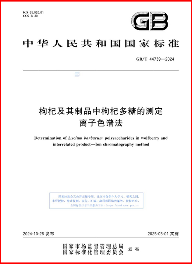 蘭州化物所牽頭制訂的國家標(biāo)準(zhǔn)《枸杞及其制品中枸杞多糖的測(cè)定 離子色譜法》獲批發(fā)布