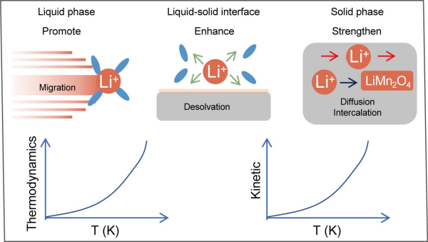 在材料改性的基礎上,青海鹽湖研究所科研人員針對環(huán)境溫度影響電化學吸附熱力學和動力學研究不夠深入的問題,開展了逐步升溫的策略(273.15到328.15 K),探究了溫度如何影響液相中水合離子遷移,固液界面離子脫水合和電子轉移,固相中離子擴散等行為的熱力學和動力學(圖3)。該研究通過升溫強化了熱力學和動力學,使吸附速率和吸附容量改善,且通過調節(jié)反應參數(shù)優(yōu)化反應速率的策略也可用于電池、催化合能源等領域(Sep. Purif. Technol.355?。?025) 129631)。