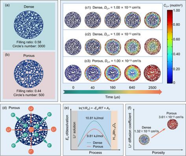 多孔強化鋰離子吸附擴散和電子轉移機理圖
