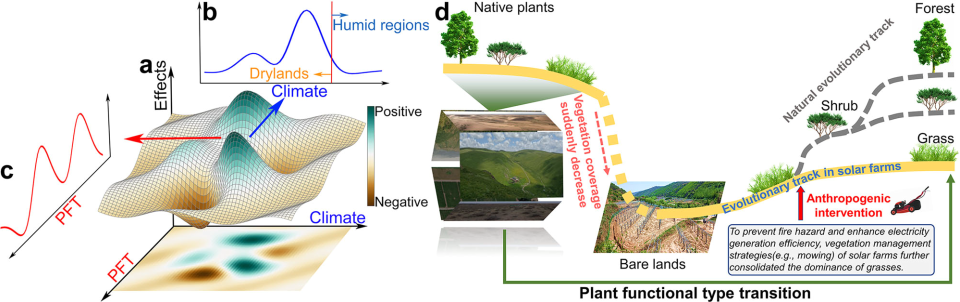 相關(guān)成果Diverse vegetation responses to solar farm installation are also driven by climate change發(fā)表于Nature旗下刊物Communications Earth & Environment。西北研究院博士研究生吳川東為論文第一作者,劉鵠副研究員為通訊作者。該研究由國家自然科學(xué)基金、甘肅省拔尖人才項(xiàng)目和土耳其科學(xué)技術(shù)研究理事會(huì)杰出人才項(xiàng)目共同資助。