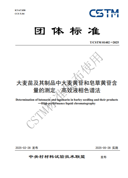 2025年2月28日,由中國科學(xué)院西北高原生物研究所、青海省藥品檢驗檢測院、西寧海關(guān)技術(shù)中心和青海金麥杞生物科技有限公司聯(lián)合完成的中國材料與試驗團(tuán)體標(biāo)準(zhǔn)委員會(CSTM)團(tuán)體標(biāo)準(zhǔn)《大麥苗及其制品中大麥黃苷和皂草黃苷含量的測定 高效液相色譜法》(T/CSTM 01402—2025)正式發(fā)布。該標(biāo)準(zhǔn)為基于大麥苗(青稞苗)的大健康產(chǎn)品的質(zhì)量控制和技術(shù)創(chuàng)新提供了科學(xué)依據(jù)和規(guī)范化指導(dǎo)。標(biāo)準(zhǔn)詳細(xì)規(guī)定了使用高效液相色譜法測定大麥苗及其制品中活性成分大麥黃苷和皂草黃苷含量的方法,包括樣品的前處理、色譜條件的優(yōu)化、校準(zhǔn)曲線的繪制、數(shù)據(jù)的處理、以及測量不確定度的評估等關(guān)鍵環(huán)節(jié)。標(biāo)準(zhǔn)還特別強(qiáng)調(diào)了在實際檢測中應(yīng)根據(jù)樣品的特性進(jìn)行個性化的調(diào)整和優(yōu)化,以確保檢測結(jié)果的準(zhǔn)確性和可靠性。此外,標(biāo)準(zhǔn)還提供了詳細(xì)的試驗報告模板,包括識別樣品、實驗室和試驗日期所需的全部信息,以及引用標(biāo)準(zhǔn)、結(jié)果表示和異常現(xiàn)象記錄等內(nèi)容,為檢測結(jié)果的完整性和可追溯性提供了有力保障。