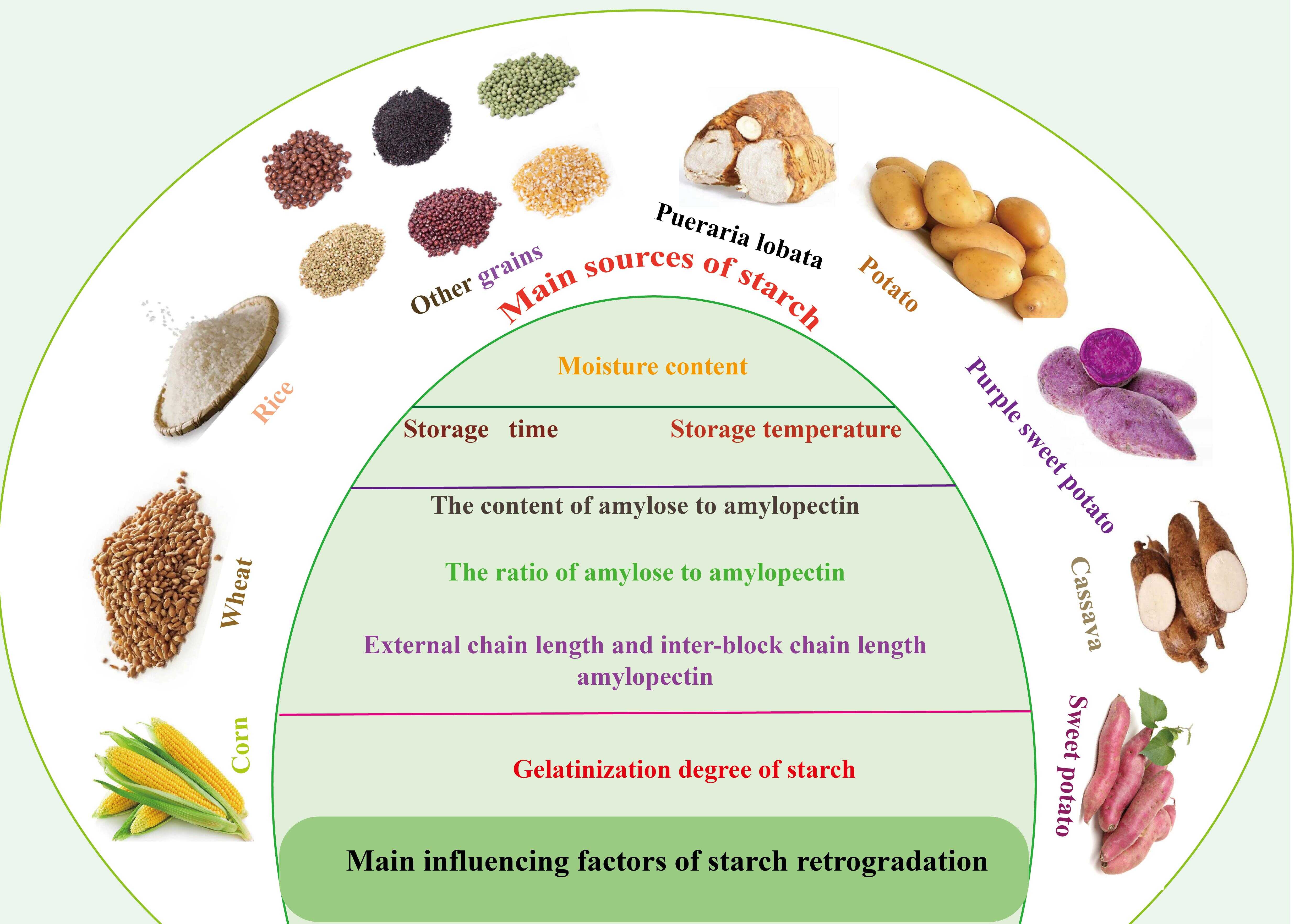 近日,中國科學(xué)院蘭州化學(xué)物理研究所天然藥物與化學(xué)測量研究中心食品化學(xué)與安全檢測團(tuán)隊(duì)在抑制淀粉回生方面發(fā)表相關(guān)綜述文章。全面總結(jié)了影響淀粉回生的關(guān)鍵因素,包括淀粉的來源、組成、糊化程度、水分含量、儲存溫度和時(shí)間等。研究指出,不同來源的淀粉由于其化學(xué)組成和結(jié)構(gòu)差異,回生行為存在顯著不同。