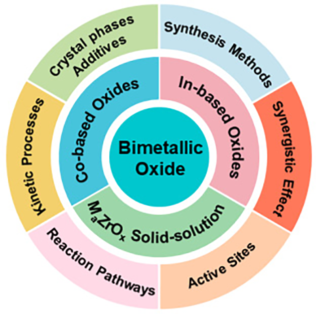 隨著化石燃料的逐漸耗盡,其燃燒產(chǎn)生的大量二氧化碳排放帶來(lái)了嚴(yán)峻環(huán)境問(wèn)題,能源與環(huán)境雙重挑戰(zhàn)日益凸顯,已對(duì)人類生存構(gòu)成嚴(yán)重威脅。在此背景下,通過(guò)碳捕獲與利用(CCU)的過(guò)程來(lái)減少二氧化碳排放成為當(dāng)前研究的重點(diǎn)方向。將二氧化碳作為化學(xué)生產(chǎn)的非傳統(tǒng)且可持續(xù)的碳源加以利用,可減少對(duì)石油等化石燃料的依賴,并妥善解決碳排放問(wèn)題。在眾多的加氫產(chǎn)物中,甲醇是被受青睞的選擇。由于其出色的催化性能和穩(wěn)定性,雙金屬氧化物催化劑已成為該領(lǐng)域最具前景的研究課題。