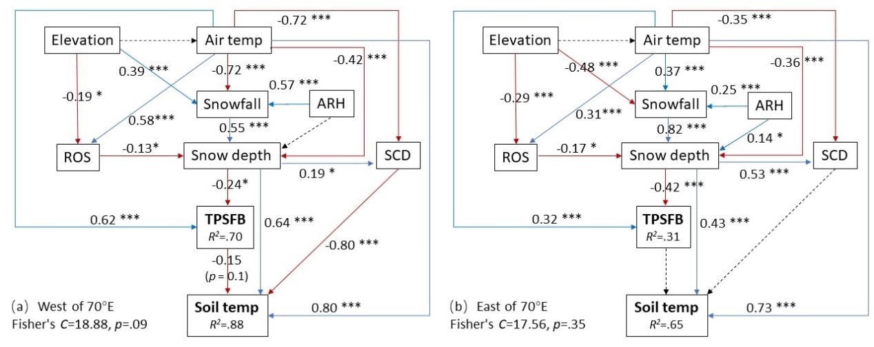 地形、氣象、積雪和TPSFB對(duì)土壤溫度驅(qū)動(dòng)機(jī)制的結(jié)構(gòu)方程模擬分析