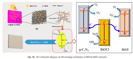 BiOCN/MOC材料自清潔機理示意圖