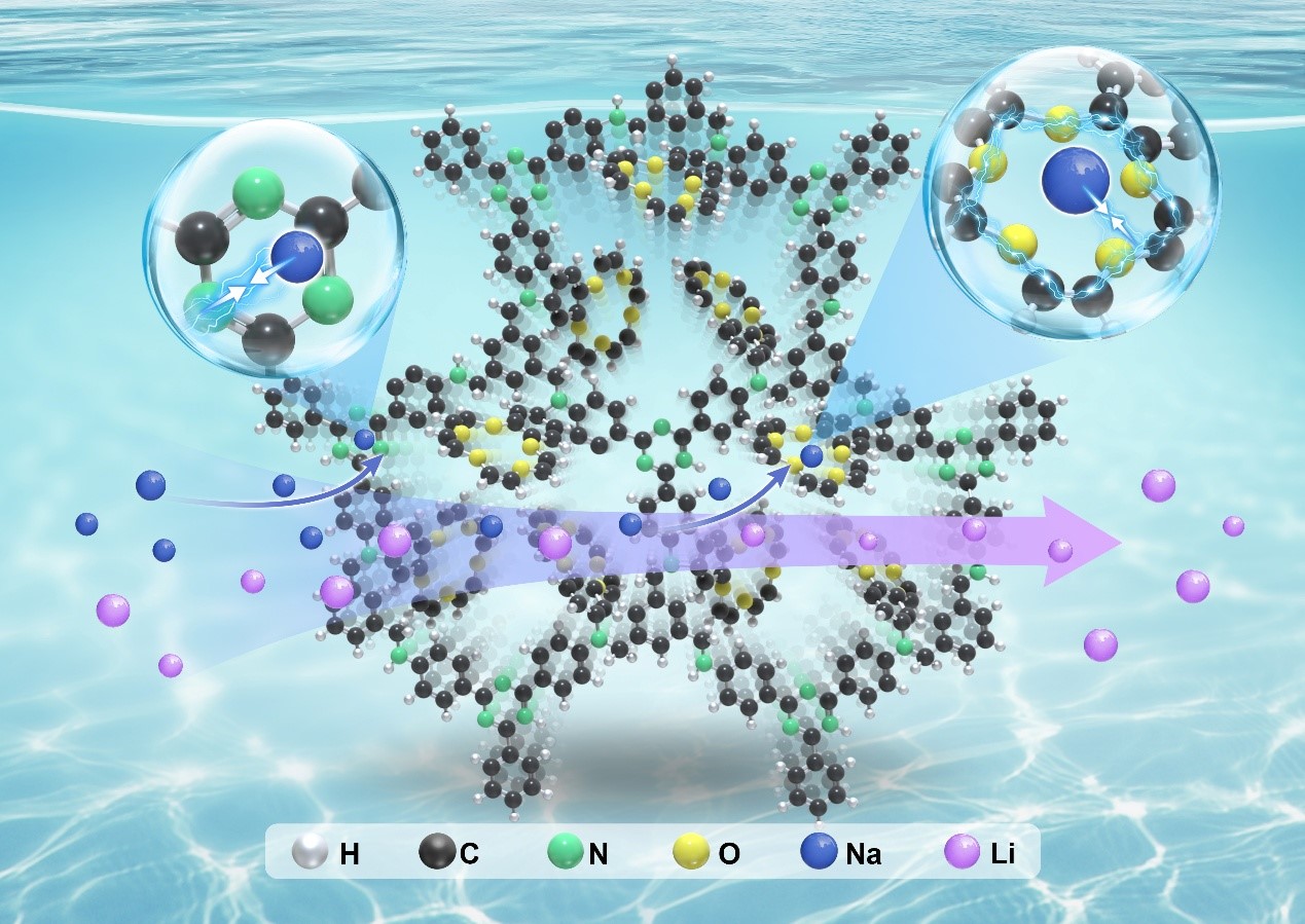 近日,青海鹽湖所膜分離提鋰技術(shù)與應(yīng)用團隊和電化學(xué)分離技術(shù)團隊在Chemical Engineering Journal期刊上發(fā)表題為“Synergy of framework dynamics and crown ether chemistry in covalent organic frameworks for Na+ capture(共價有機框架中框架動力學(xué)與冠醚化學(xué)的協(xié)同效應(yīng)助力鈉離子捕獲)”的研究進展,青海鹽湖所博士生何小祥為論文第一作者,膜分離提鋰技術(shù)與應(yīng)用團隊的朱朝梁副研究員、徐國旺博士和電化學(xué)分離技術(shù)團隊的高丹丹研究員為共同通訊作者。在這項工作中,科研人員開發(fā)了一種新的柔性COFs的合成策略,在水溶液中通邊攪拌單體90分鐘內(nèi)合成了ISL-COF-1和ISL-COF-2,并通過后合成修飾柔性COFs制備了4-溴苯并-15-冠-5功能化的COFs(ISL-COF-1CE/2CE)。表征結(jié)果表明,修飾后的COFs在保持高結(jié)晶度的同時,實現(xiàn)了15C5的有效固定。其中,ISL-COF-1CE展現(xiàn)出顯著的Na?吸附性能(63.7 mg/g),優(yōu)異的選擇性吸附(Na?:41.4 mg/g vs Li?:5.8 mg/g)和循環(huán)穩(wěn)定性(10次循環(huán)后效率>90%),證明了在Na?吸附方面的卓越性能。動力學(xué)和熱力學(xué)分析表明,吸附過程符合偽二階模型和朗格繆爾等溫線,且為吸熱自發(fā)反應(yīng)。DFT計算揭示冠醚位點為主要結(jié)合位點,其次為三嗪N,而C–NH基團作用較弱。實驗分析和理論計算表明,ISL-COF-1CE在Na?吸附方面的卓越性能源于冠醚配位、柔性框架、靜電相互作用與親水性增強的協(xié)同效應(yīng)。該研究不僅闡明了冠醚-COFs中主-客體的相互作用機制,還為開發(fā)高效離子分離吸附劑提供了新策略。