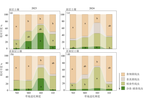 不同退化梯度高寒草甸土壤線蟲營養(yǎng)類群組成變化