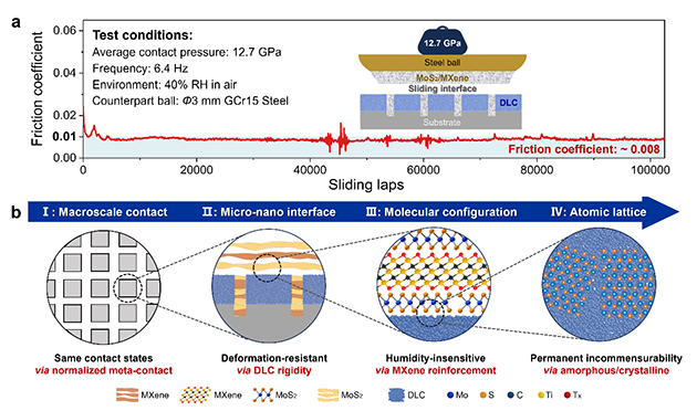 圖3. 工程尺度超潤(rùn)滑性能及跨尺度結(jié)構(gòu)協(xié)同作用機(jī)理