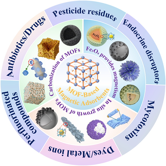 中國(guó)科學(xué)院蘭州化學(xué)物理研究所天然藥物與化學(xué)測(cè)量研究中心色譜材料與分離測(cè)量課題組長(zhǎng)期聚焦西部資源能源復(fù)雜體系分離分析領(lǐng)域的新材料研發(fā)與新方法學(xué)構(gòu)建,研發(fā)出多種功能化有機(jī)框架復(fù)合材料,應(yīng)用于環(huán)境和食品中各類污染物的萃取富集與吸附去除研究(Analytica Chimica Acta, 2024, 1287: 342112;Microchimica Acta, 2024, 191(2): 90;Environmental Research, 2025, 264: 120319; ACS Applied Polymer Materials, 2025,7,5737-5746; Separation and Purification Technology, 2026, 394, 137454.),為環(huán)境監(jiān)測(cè)與食品安全評(píng)估提供了重要的技術(shù)支撐?;谠诖判訫OF基吸附材料研究中的積累,發(fā)表了關(guān)于磁性MOF基復(fù)合材料吸附污染物的研究進(jìn)展的綜述文章。