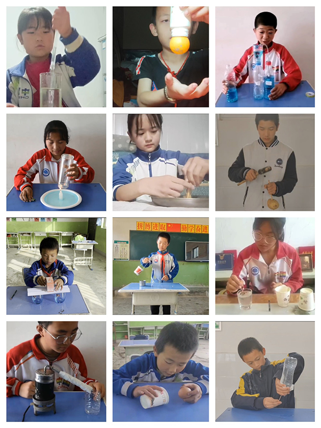 前期,研究所面向幫扶村師生組織了“向星·向未來(lái)”科學(xué)實(shí)驗(yàn)短視頻大賽,學(xué)校積極響應(yīng),學(xué)生踴躍參加,共提交46件作品,最終評(píng)選出30個(gè)優(yōu)秀獎(jiǎng)、10個(gè)參與獎(jiǎng)以及13名優(yōu)秀指導(dǎo)老師獎(jiǎng)。作品展現(xiàn)形式豐富多彩,涵蓋了摩擦學(xué)、慣性定律、大氣壓力、熱脹冷縮等生活中常見的原理及現(xiàn)象。