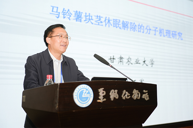 學(xué)術(shù)報(bào)告環(huán)節(jié),由蘭州化物所天然藥物與化學(xué)測(cè)量研究中心主任楊軍麗主持。特邀國(guó)際馬鈴薯中心亞太中心謝建民主任、國(guó)家馬鈴薯產(chǎn)業(yè)技術(shù)體系首席科學(xué)家徐建飛研究員、甘肅農(nóng)業(yè)大學(xué)副校長(zhǎng)司懷軍教授和蘭州化物所曾凡逵研究員分別作了題為“加強(qiáng)科技進(jìn)步和國(guó)際合作,推動(dòng)薯業(yè)可持續(xù)發(fā)展”“我國(guó)馬鈴薯產(chǎn)業(yè)發(fā)展現(xiàn)狀和展望”“馬鈴薯塊莖休眠解除的分子機(jī)理”和“從馬鈴薯加工廢棄物資源化利用到質(zhì)量安全與營(yíng)養(yǎng)品質(zhì)評(píng)價(jià)”的報(bào)告。會(huì)議還舉行了聯(lián)盟的揭牌儀式,蘭州化物所為聯(lián)盟的依托單位,曾凡逵為理事長(zhǎng)。會(huì)議期間還參觀了馬鈴薯品種及加工產(chǎn)品的展覽。下午,與會(huì)人員赴甘肅亞盛薯業(yè)集團(tuán)有限責(zé)任公司交流,參觀了國(guó)家馬鈴薯產(chǎn)業(yè)技術(shù)體系加工研究室成果展。
