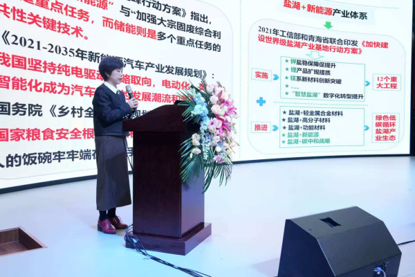 4月22日,青海分會(huì)場啟動(dòng)儀式在西寧拉開帷幕。首先展示了由中國科學(xué)院青海鹽湖研究所繪制的“青海鹽湖專利地圖”光影開場秀,立體呈現(xiàn)我國鹽湖領(lǐng)域?qū)@季秩啊kS后,青海鹽湖所研究員王敏作了題為《鹽湖科技創(chuàng)新領(lǐng)先一步 鹽湖產(chǎn)業(yè)發(fā)展領(lǐng)跑一路》的主旨報(bào)告,系統(tǒng)闡述了鹽湖資源概況、開發(fā)利用現(xiàn)狀、關(guān)鍵問題和專利分析等相關(guān)內(nèi)容。