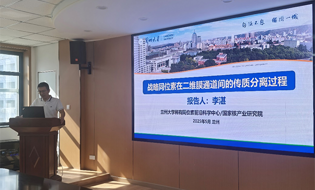 李湛作了題為“戰(zhàn)略同位素在二維膜通道間的傳質(zhì)分離過程”的報告。介紹了同位素分離的重要性、應(yīng)用需求和分離現(xiàn)狀,創(chuàng)新性地發(fā)展了系列綠色環(huán)保、低能耗、可連續(xù)分離的膜分離技術(shù),他們通過在二維納米片表面及二維層狀膜的層間原位限域引入活性位點,利用活性位點的同位素效應(yīng),結(jié)合二維層狀膜的超長傳質(zhì)通道,利用擴散速率的差異進行高效氫同位素分離、鋰離子與鋰同位素分離、醫(yī)用同位素的高效分離以及鹵水中鈾資源的高效分離,闡明了復雜體系中目標離子、分子、同位素在二維層間多功能通道的識別與篩分機制。