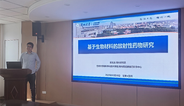 田龍龍作了題為“基于生物材料的放射性藥物研究”的報告。介紹了醫(yī)用核素的國內(nèi)外發(fā)展現(xiàn)狀以及我國醫(yī)用核素治療藥物的發(fā)展歷程及相關(guān)政策。重點分享了其團隊在核素藥物研究方面的系列成果,特別是在利用生物材料增強核藥治療效果方面的最新研究進展,他們通過以細菌合成的聚合物微球材料緩釋病原相關(guān)分子、天然松花粉作為載體緩釋多糖、生物來源的囊泡激活天然免疫等策略構(gòu)建靶向核素治療藥物、近距離放療的核素治療藥物,最終實現(xiàn)低劑量、強效的核素-免疫聯(lián)合治療。